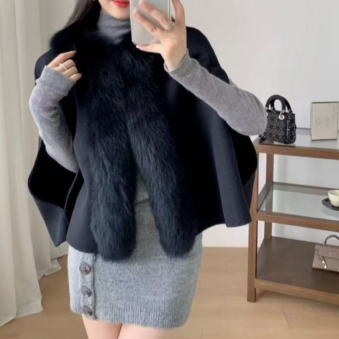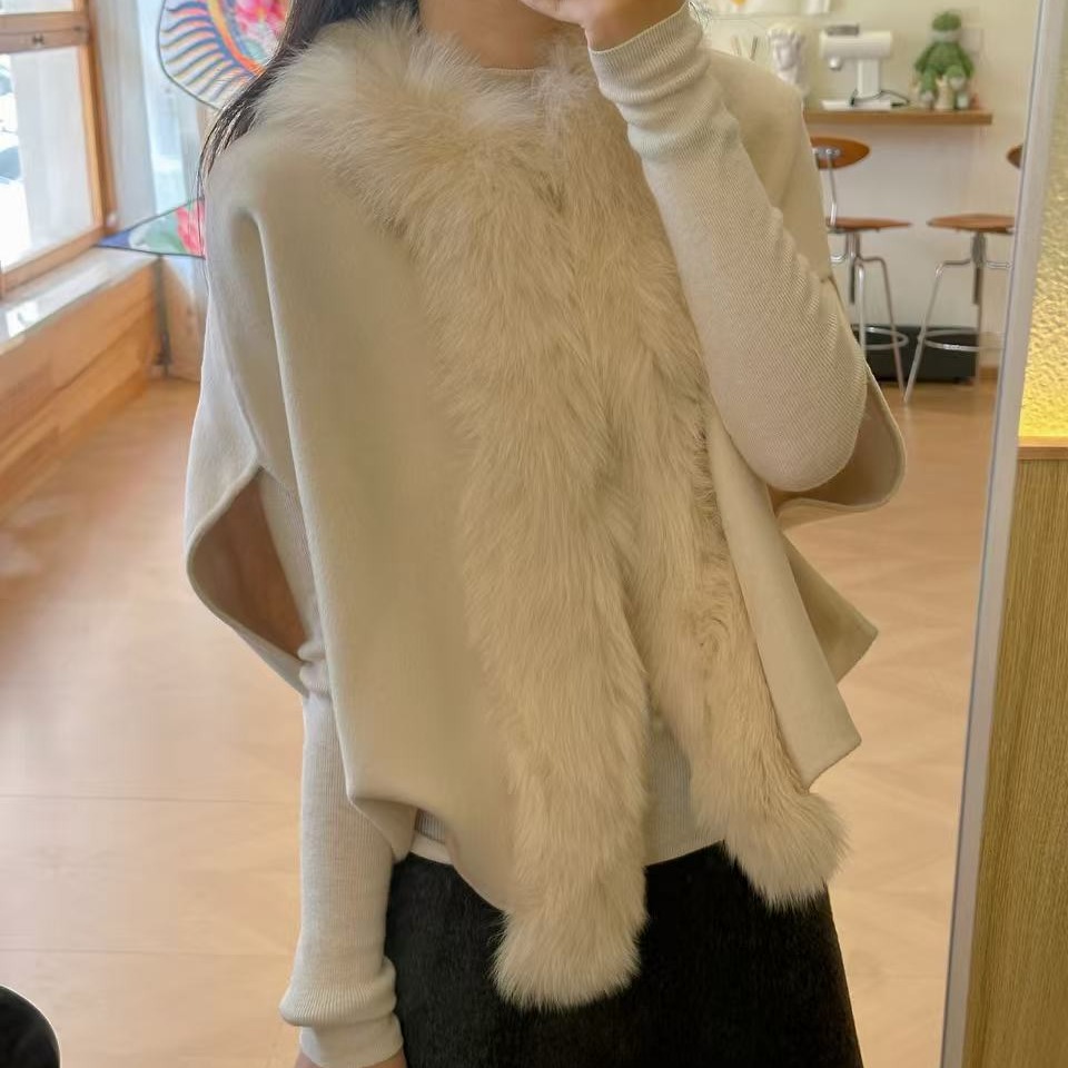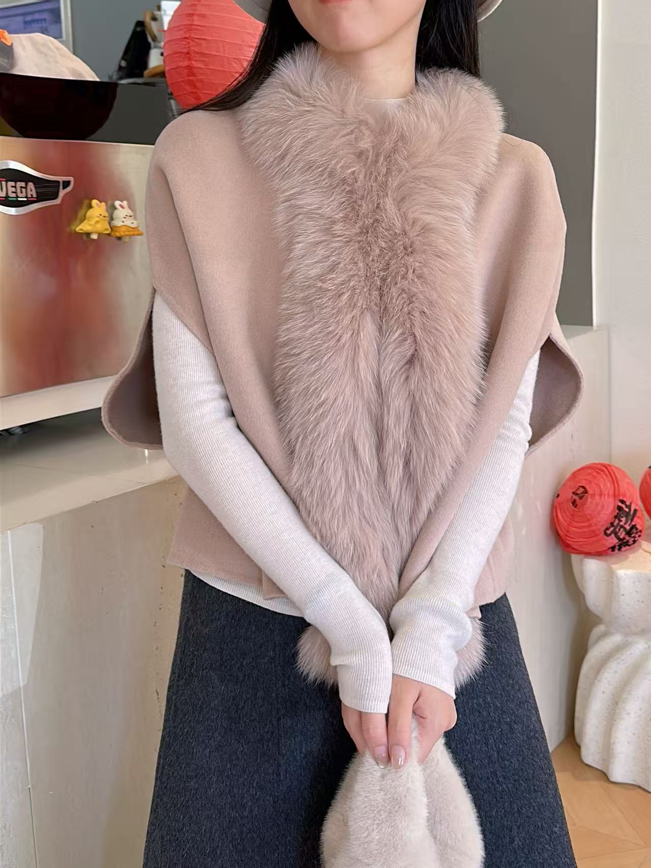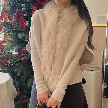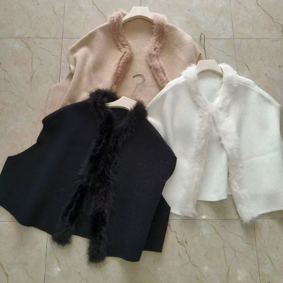 FA48347# 韩系千金风仿狐狸毛领宽松短款温柔无袖披肩毛衣 服裝批發女裝批發服飾貨源