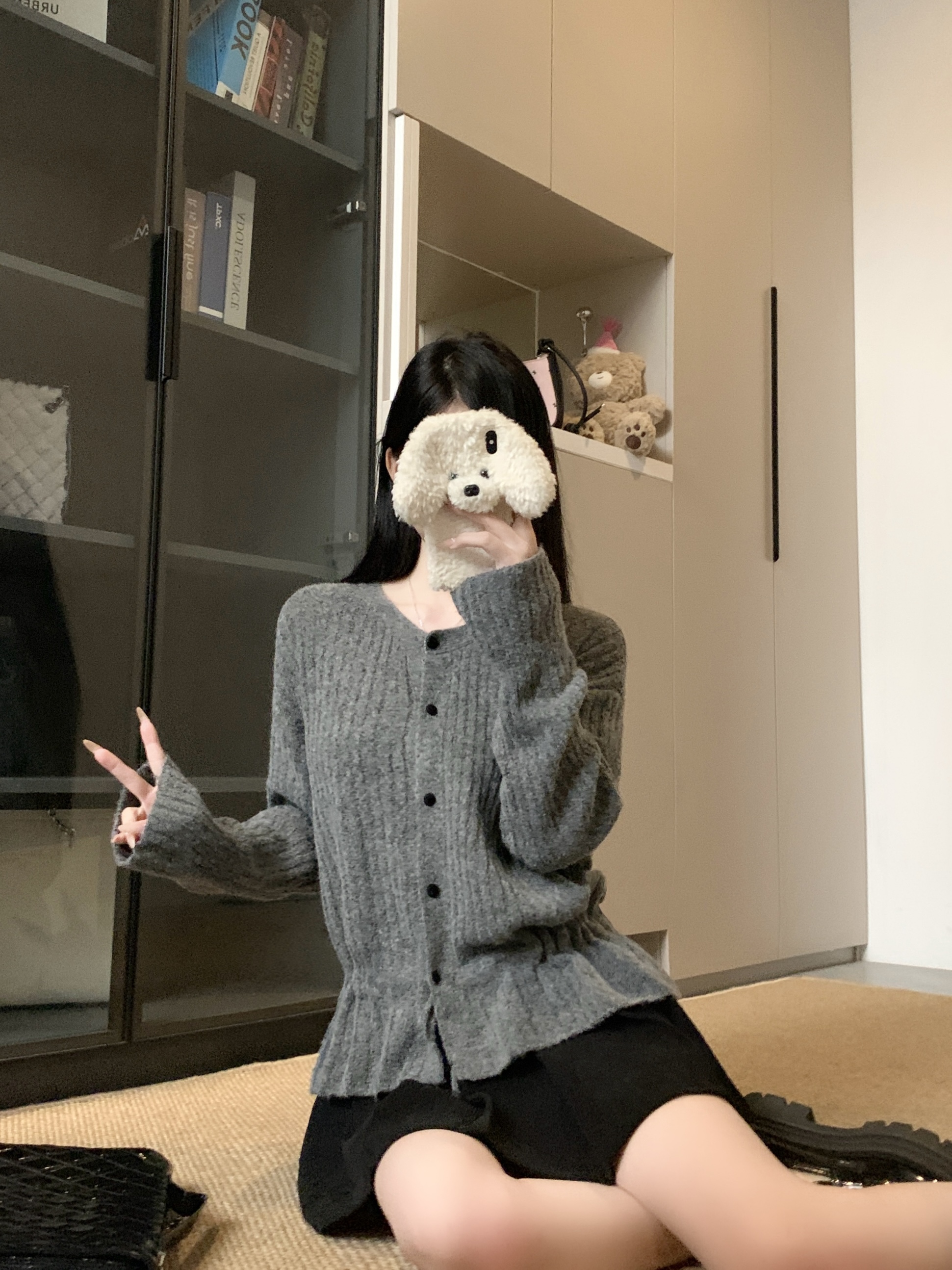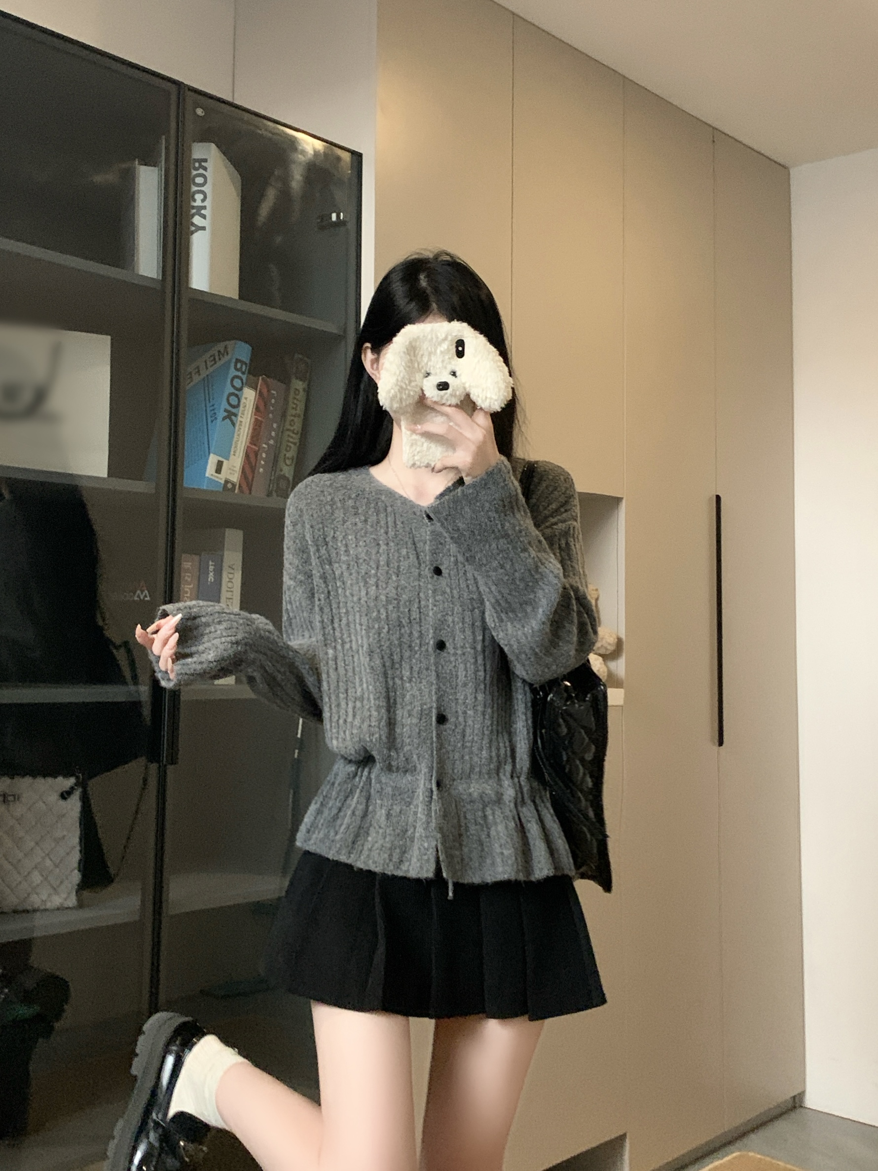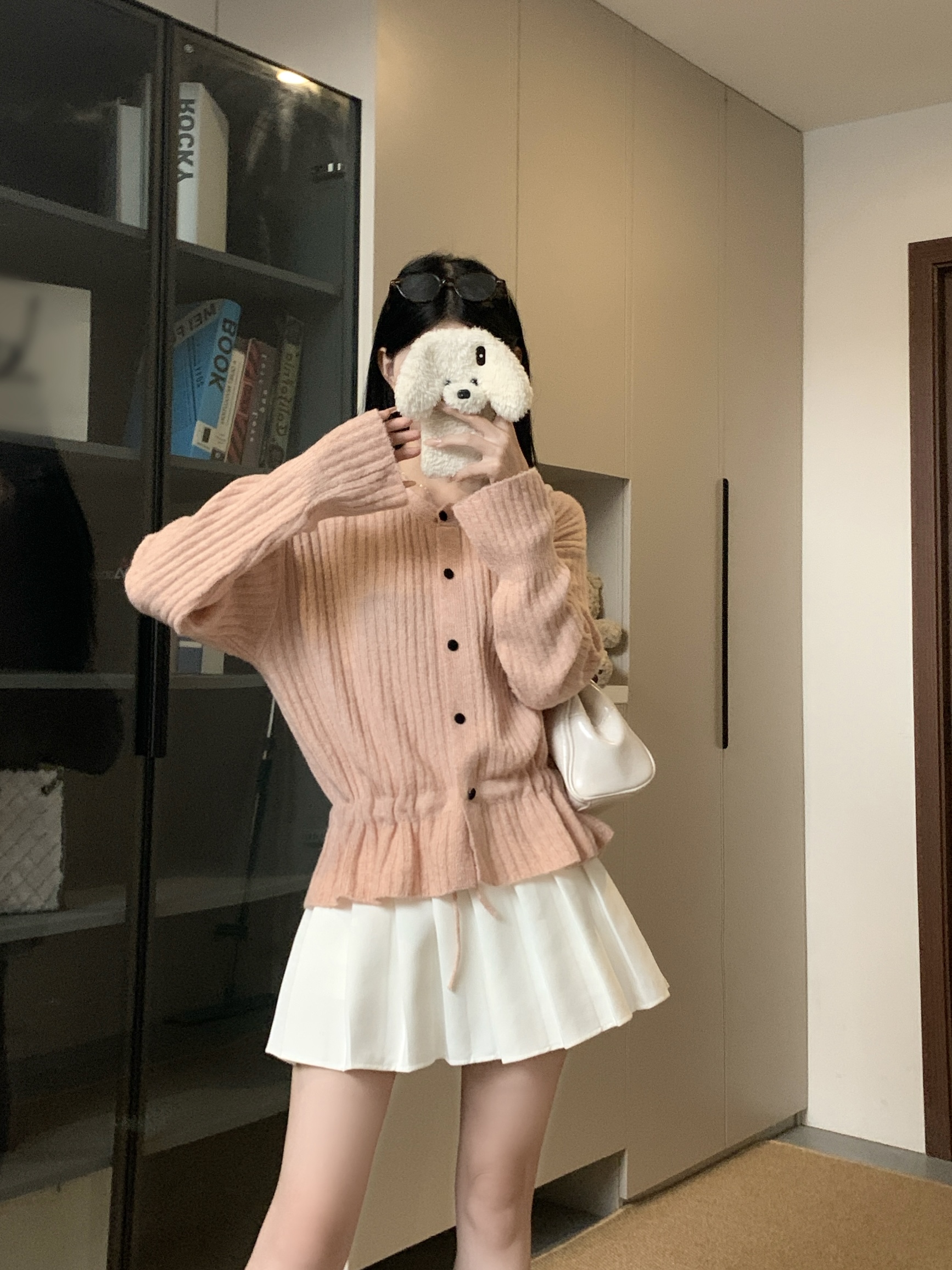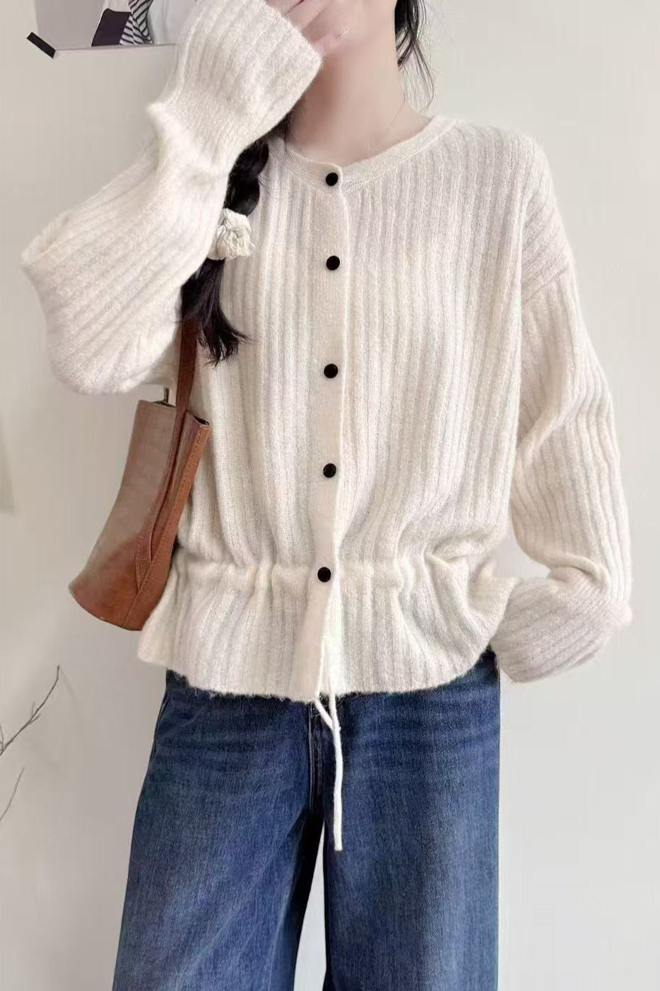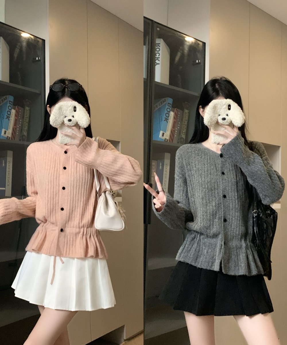 FA48353# 早秋穿搭薄款外搭针织开衫新款胖mm秋季收腰针织衫上衣 服裝批發女裝批發服飾貨源