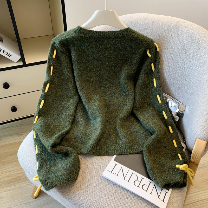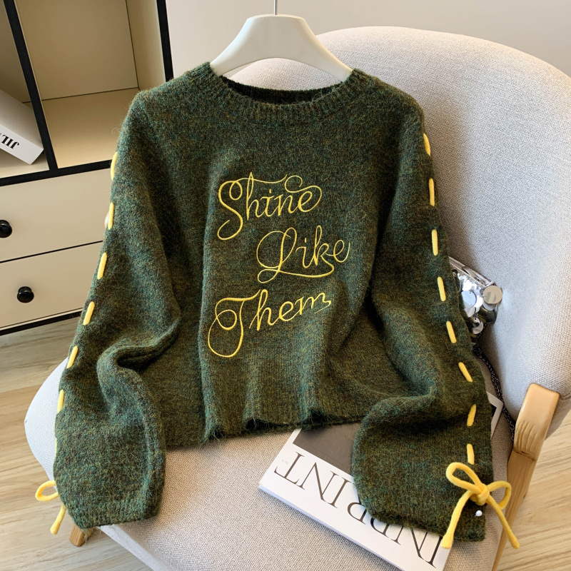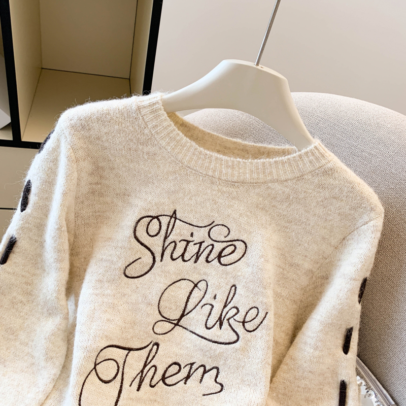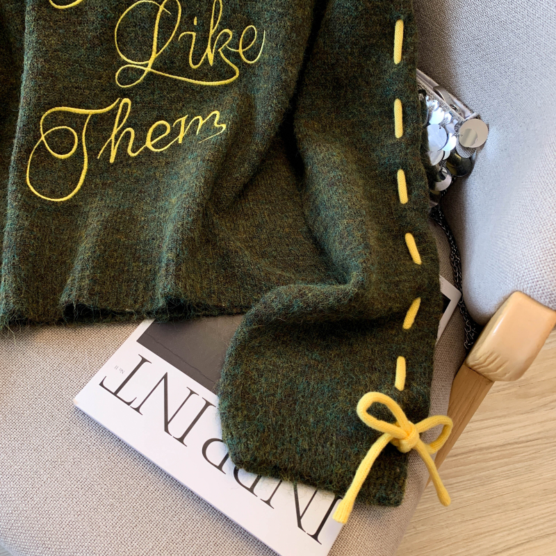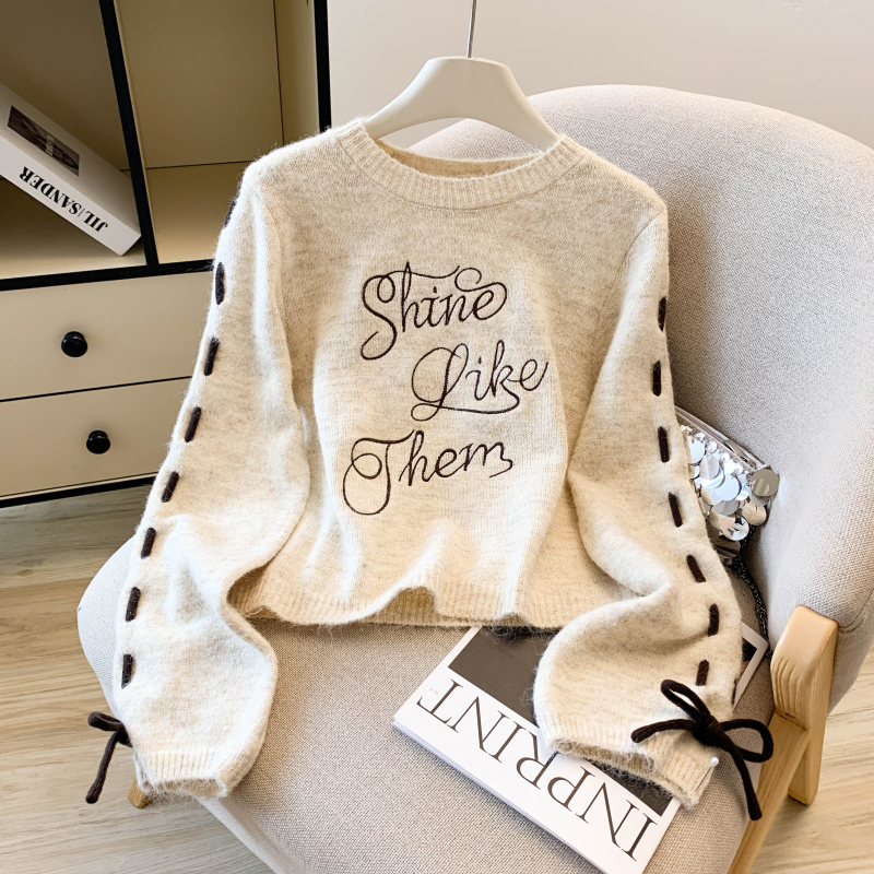 FA48358# 慵懒风设计感字母刺绣毛衣秋冬新款羊毛衫小众独特短款上衣 服裝批發女裝批發服飾貨源