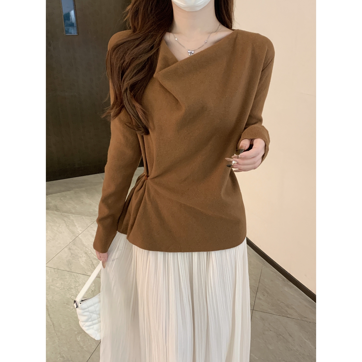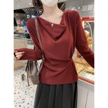FA48472# 秋冬韩版气质修身荡领系扣安迪绒长袖内搭针织衫毛衣女 服裝批發女裝批發服飾貨源
