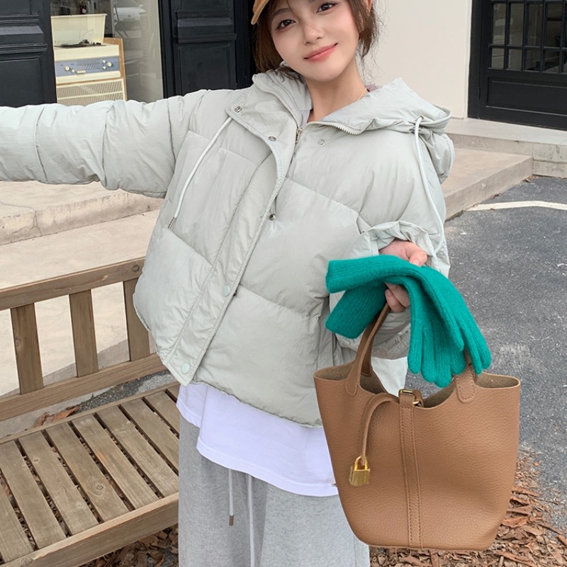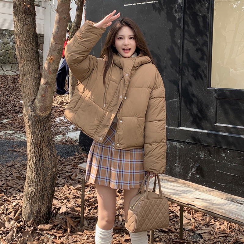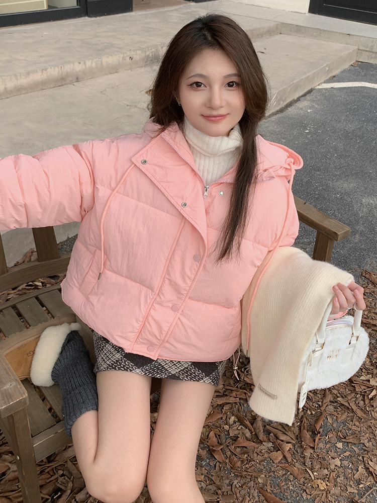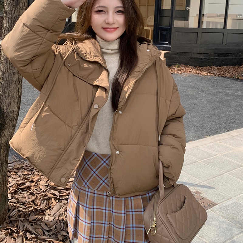 FA48491# 冬韩版简约休闲连帽拉链立领短款保暖羽绒棉面包服外套 服裝批發女裝批發服飾貨源