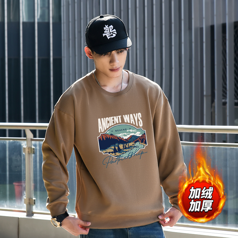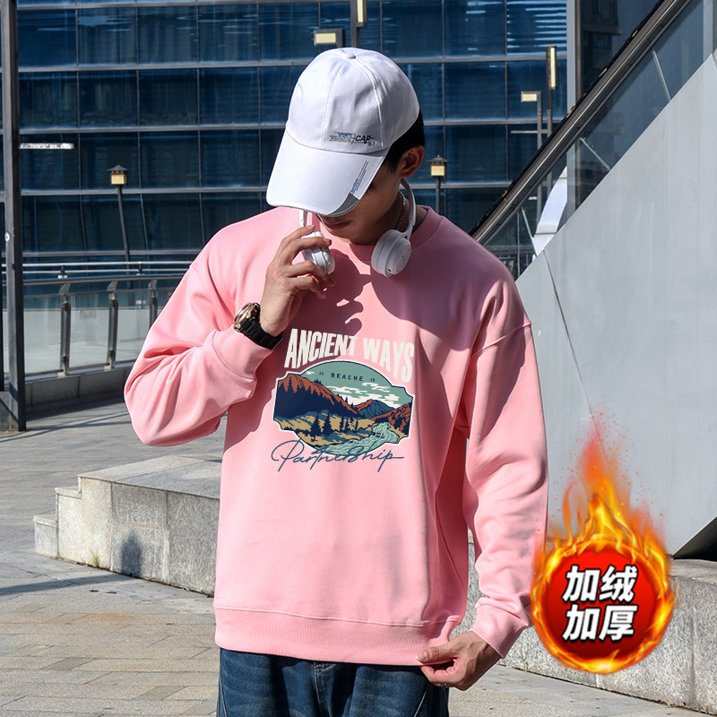 FA48653# 华棉加绒圆领潮流保暖上衣情侣宽松情侣T恤休闲卫衣 男装批发