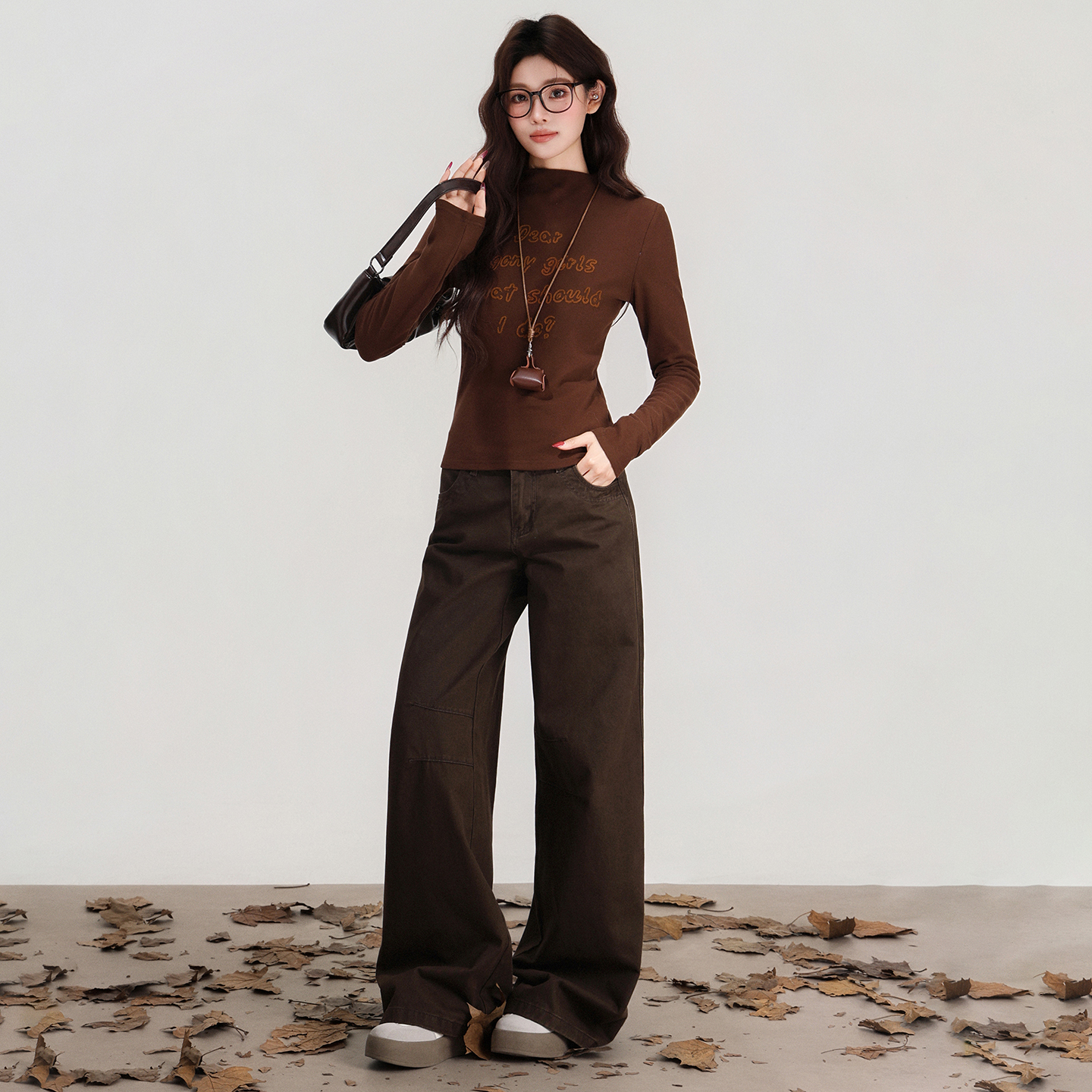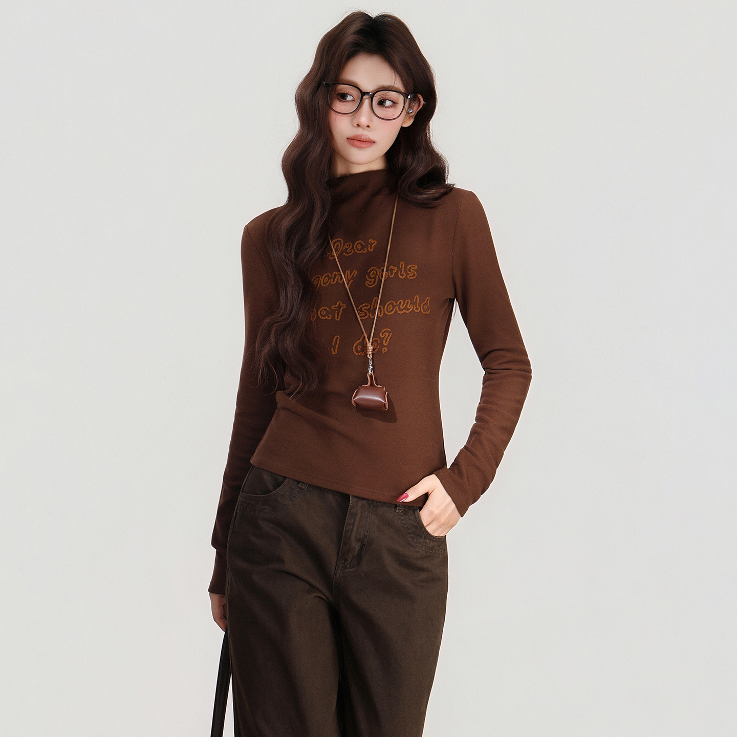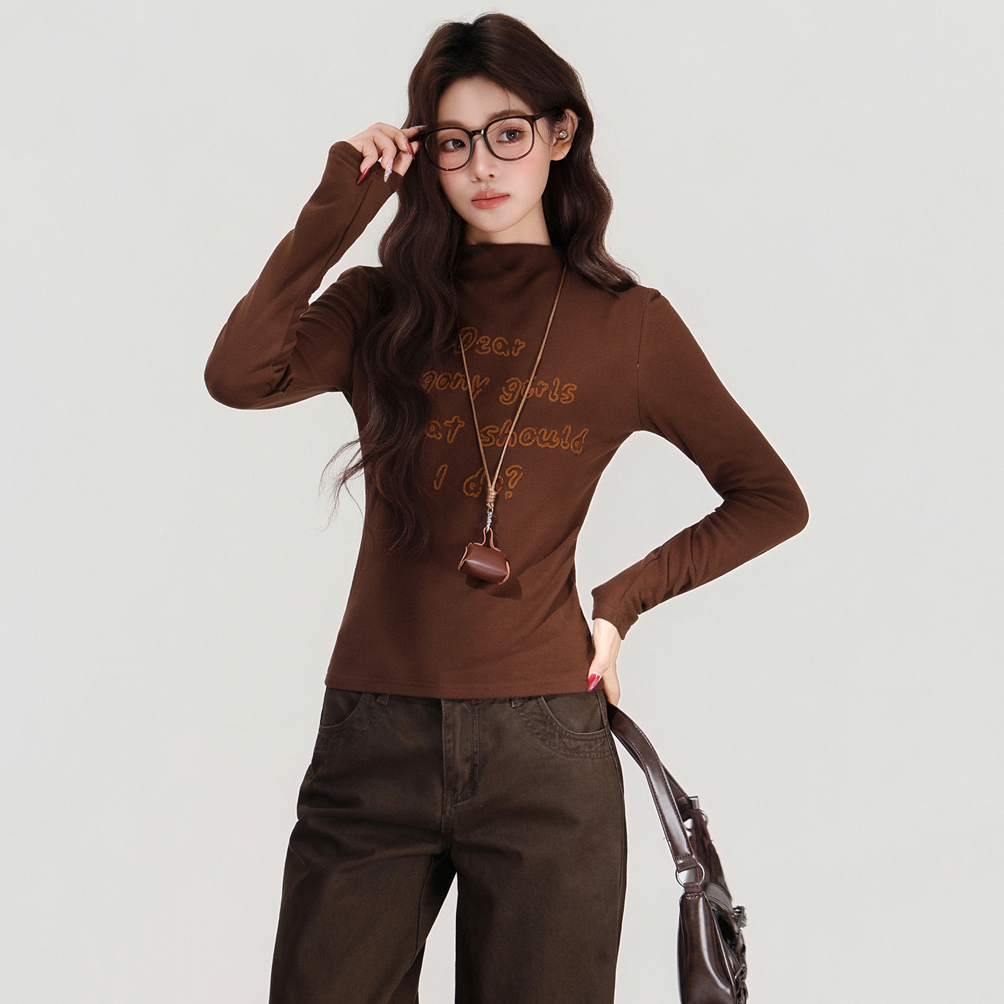 FA48735# 半高领字母长袖T恤女秋新款上衣韩版时尚百搭显瘦打底衫 服裝批發女裝批發服飾貨源