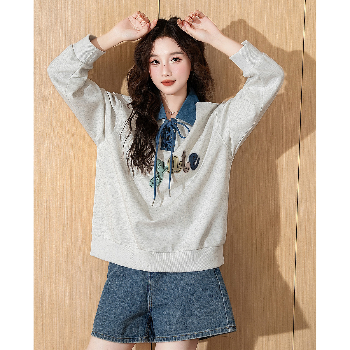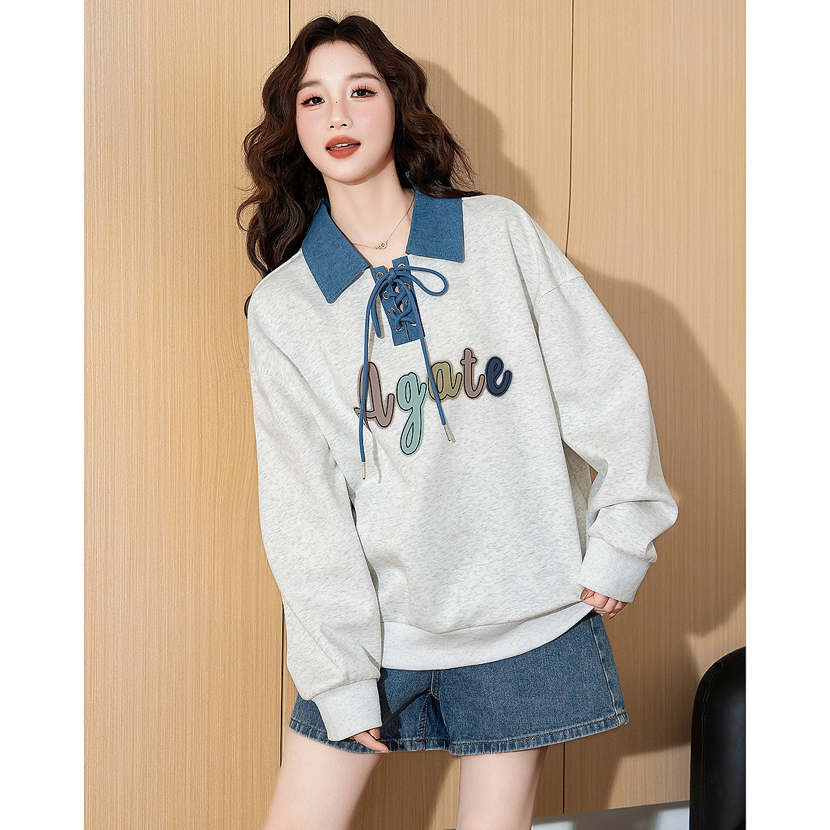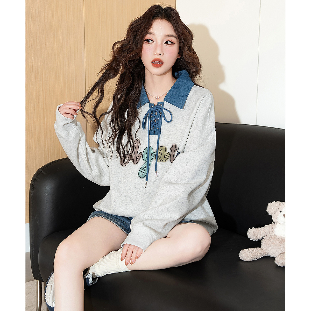 FA49032# 秋款女款卫衣女上衣翻领撞色前胸字母女士卫衣高级感洋气 服裝批發女裝批發服飾貨源