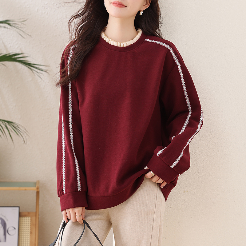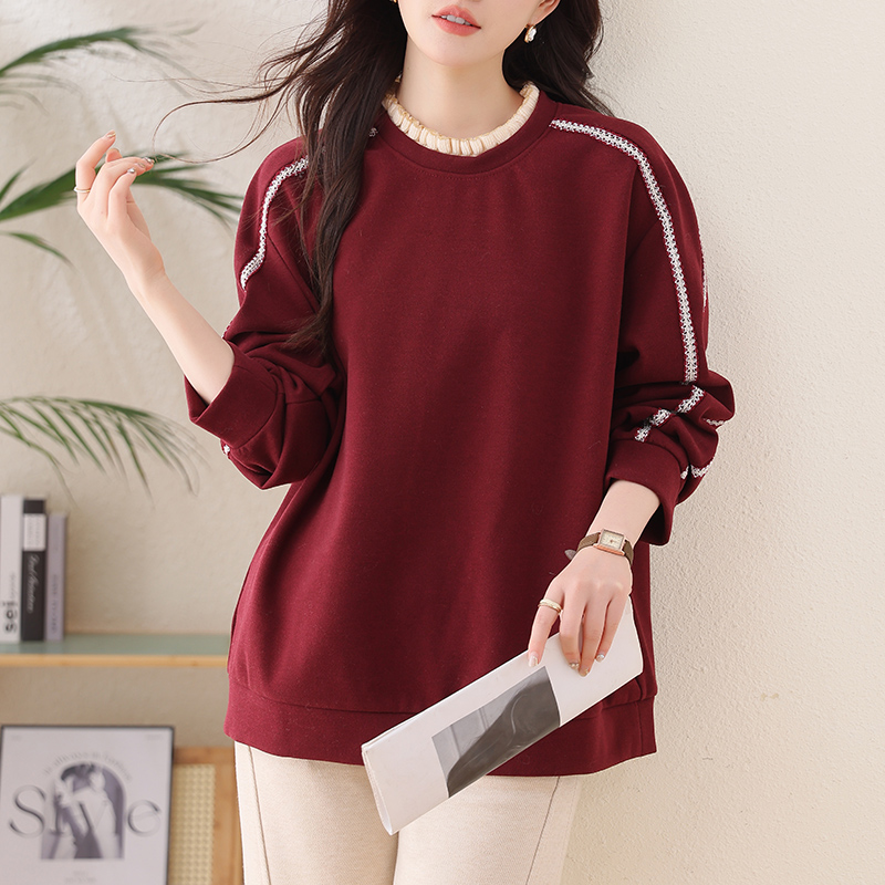 FA49036# 时尚百搭气质卫衣木耳领拼接毛呢加厚卫衣宽松不挑年龄上衣 服裝批發女裝批發服飾貨源