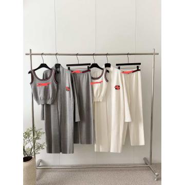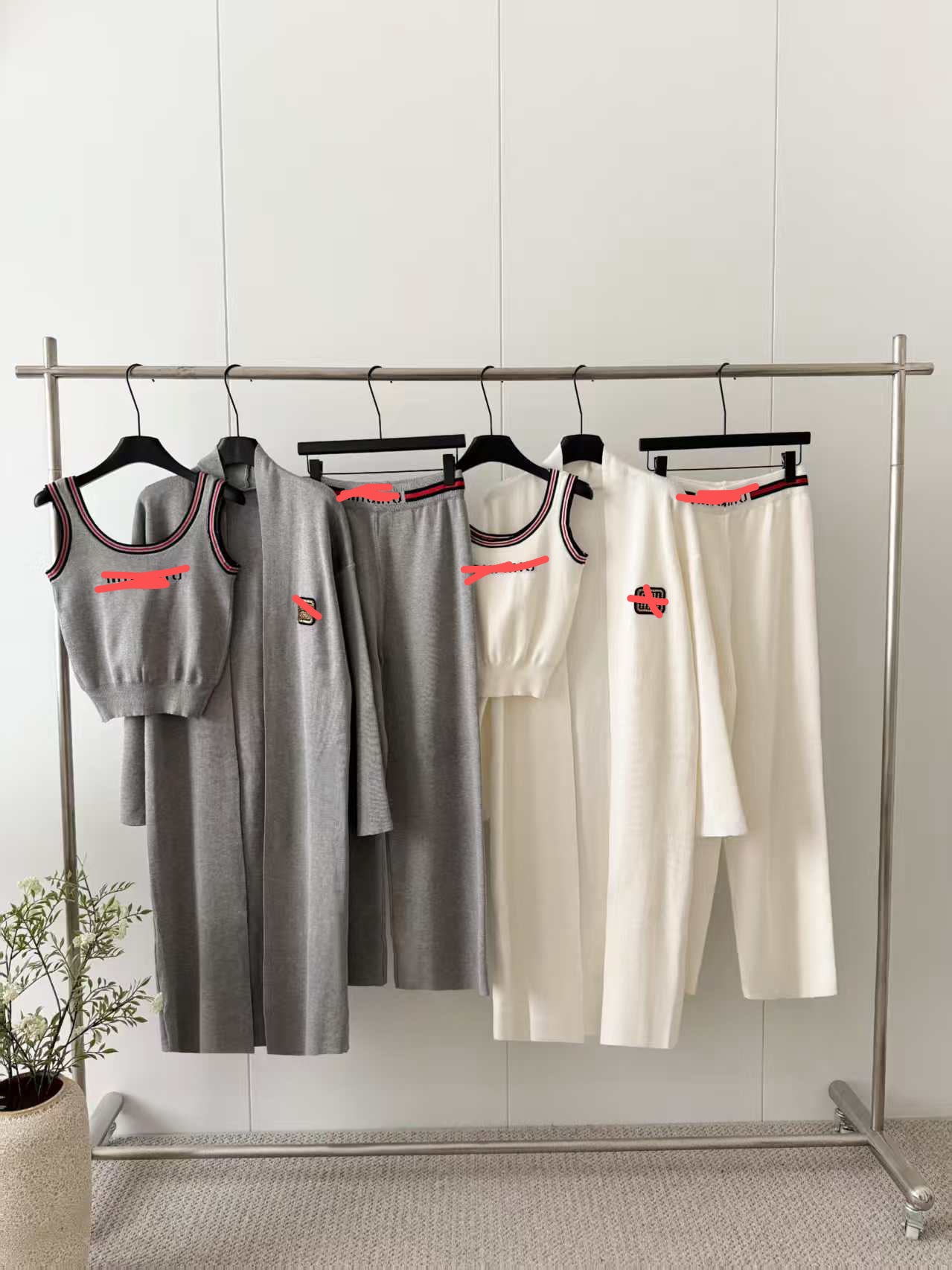 FA50624# 欧洲站春秋新款女时尚高级感腰带短袖长裙长袖外套针织两件套 服裝批發女裝批發服飾貨源