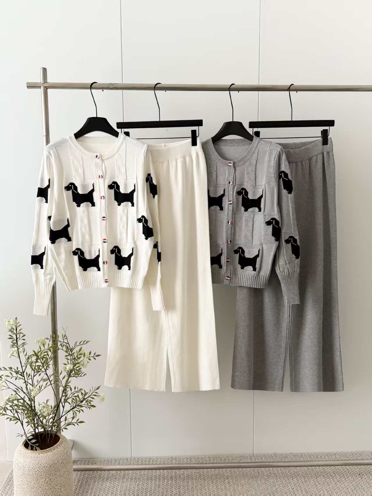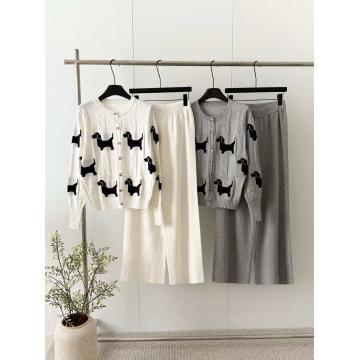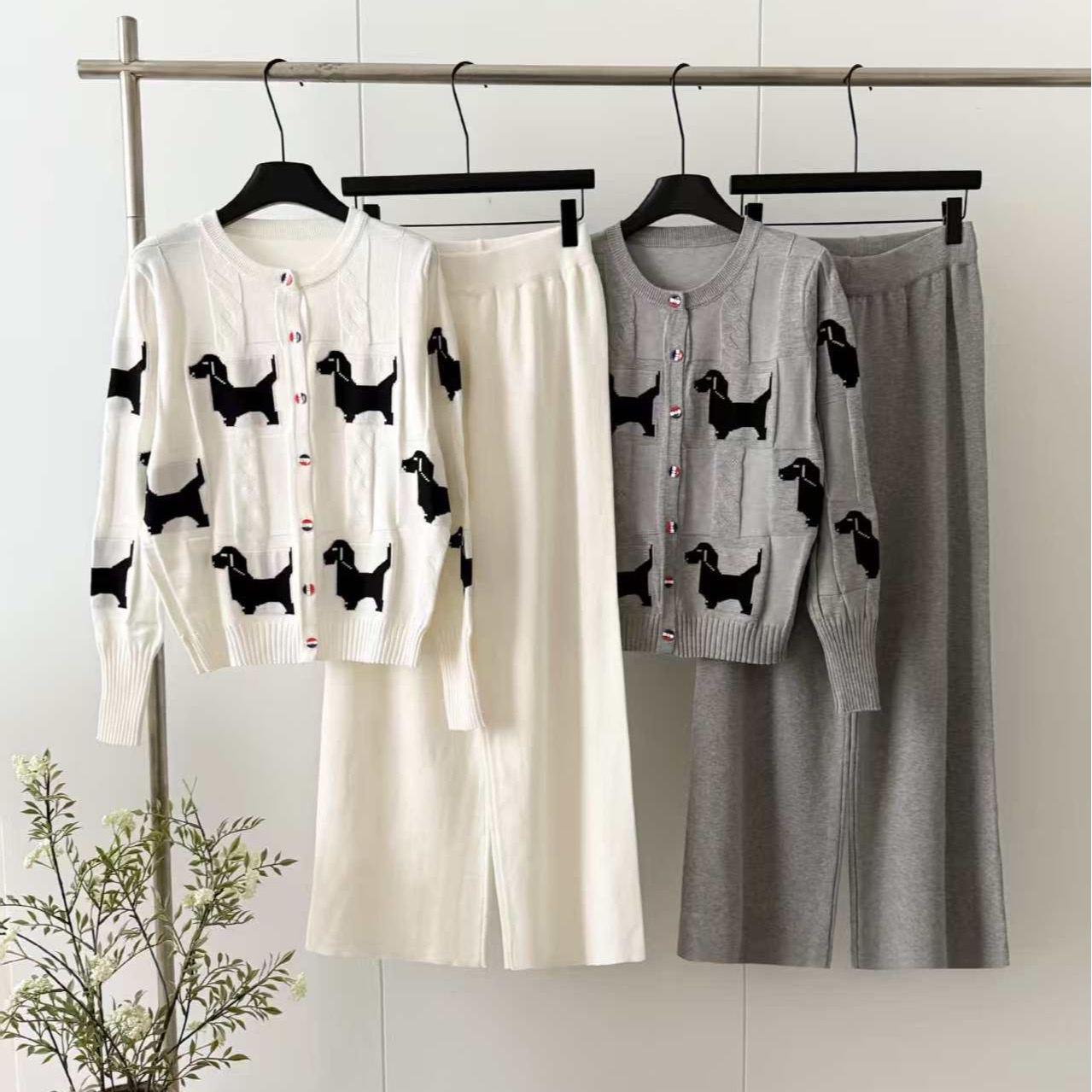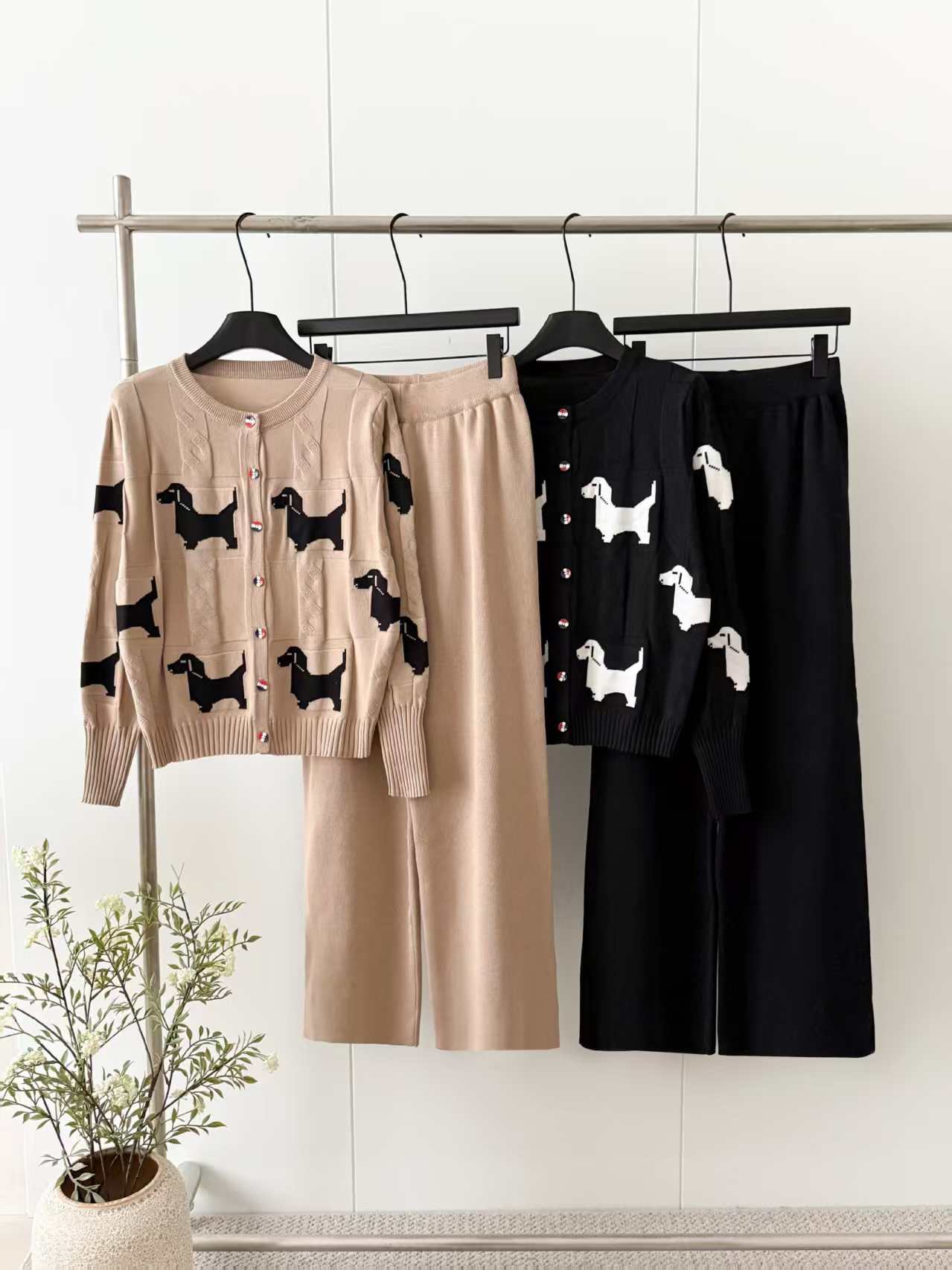 FA50625# 圆领常规款提花针织开衫长袖➕长裤套装宽松轻奢设计秋冬款 服裝批發女裝批發服飾貨源