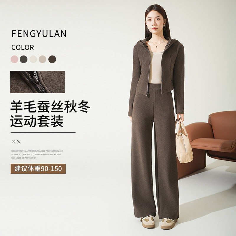 FA50715# 羊毛蚕丝连帽卫衣套装女琥珀流光秋冬新款运动休闲两件套