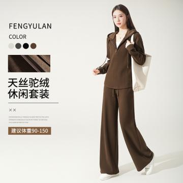 FA50720# 卫衣套装女天丝驼绒连帽琥珀流光两件套小个子显瘦秋新款