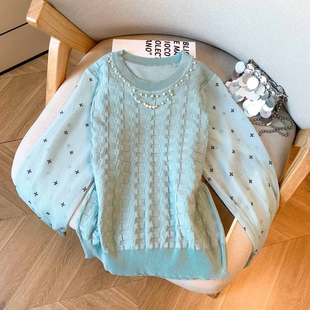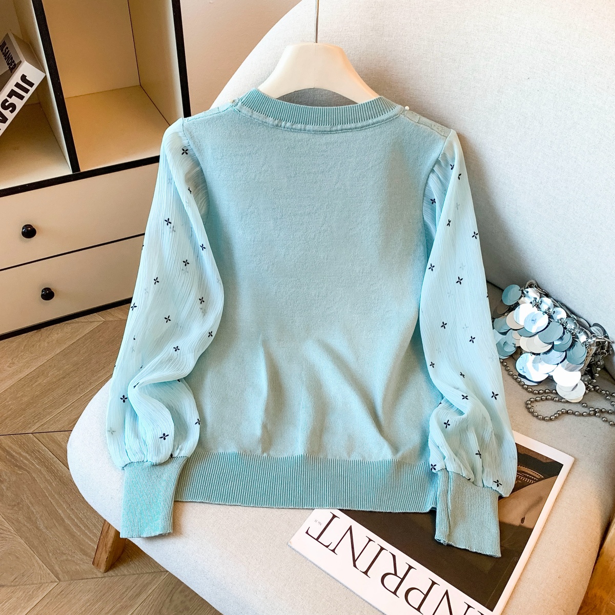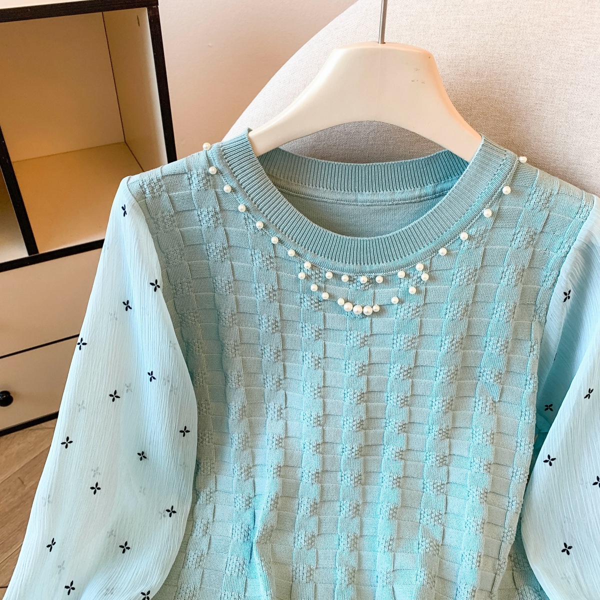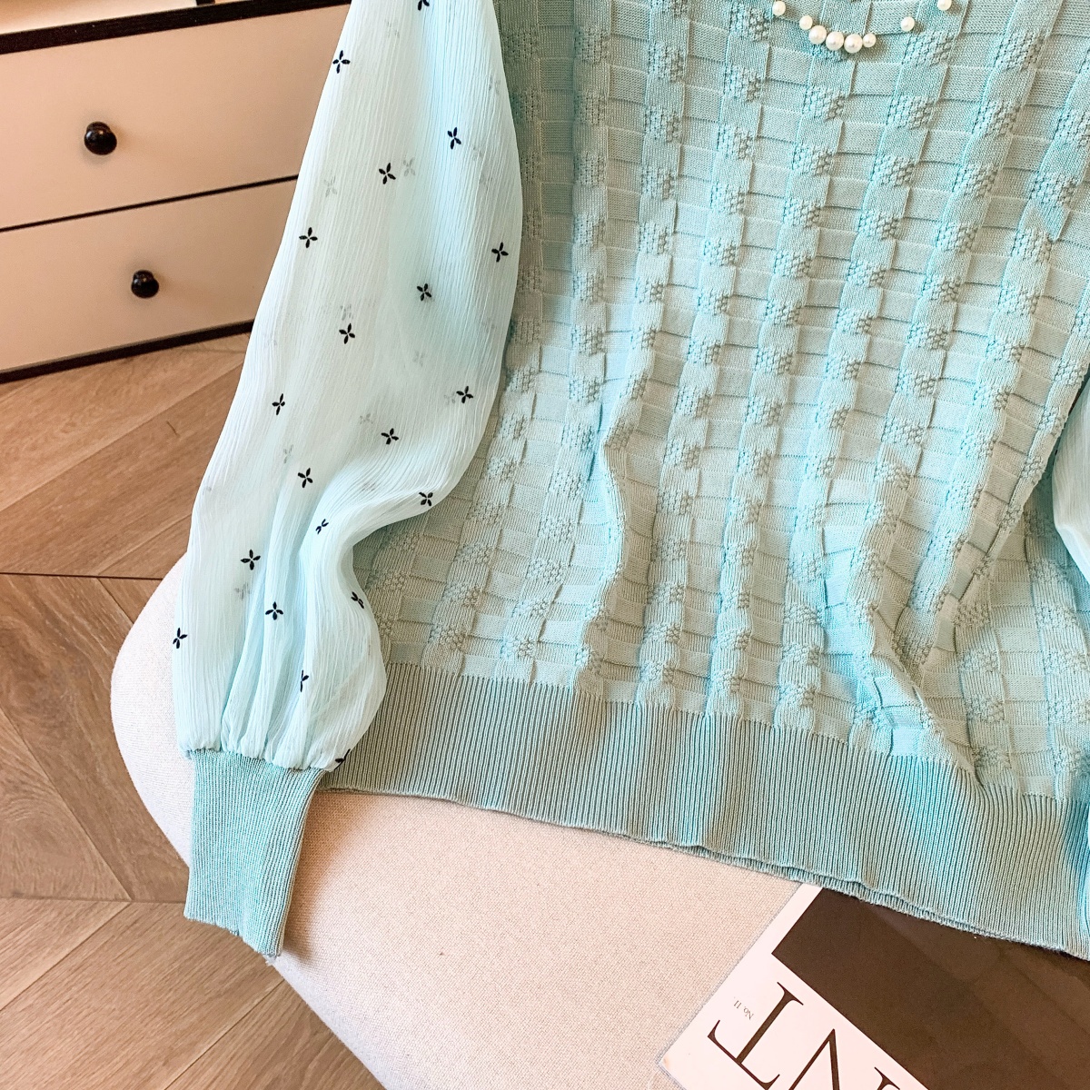 FA50811# 秋冬新款针织拼接雪纺衬衫设计感上衣欧货漂亮洋气打底衫 服裝批發女裝批發服飾貨源