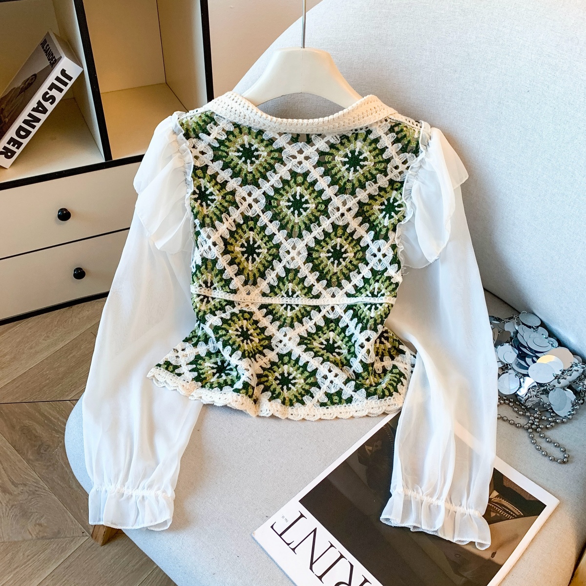 FA50813# 秋季新款复古钩花镂空针织马甲背心女款外搭短款无袖上衣 服裝批發女裝批發服飾貨源