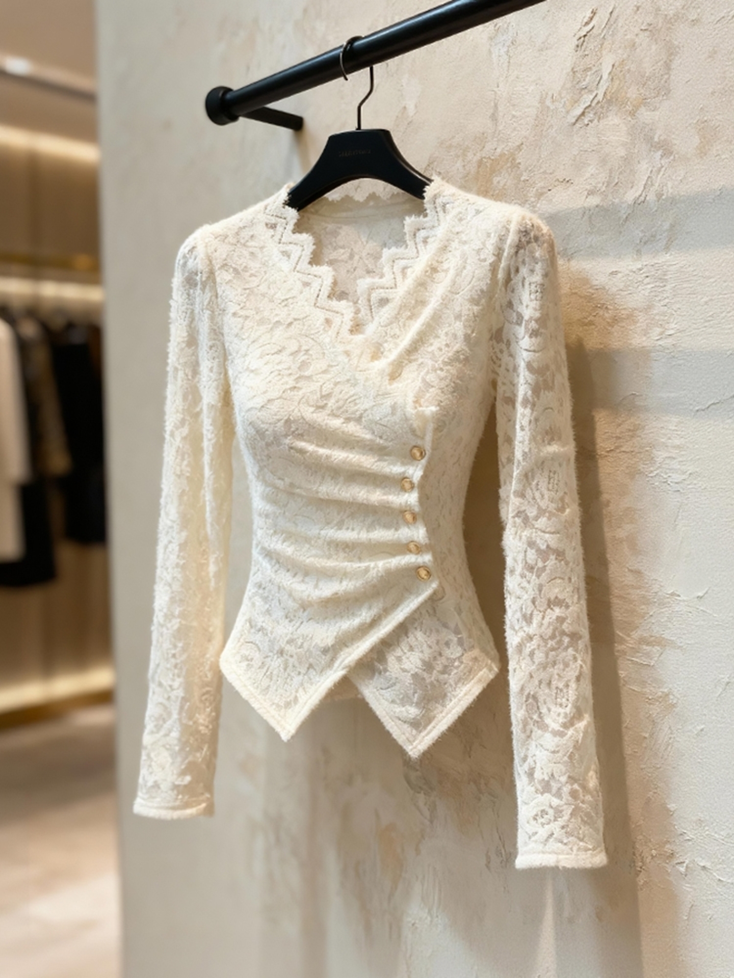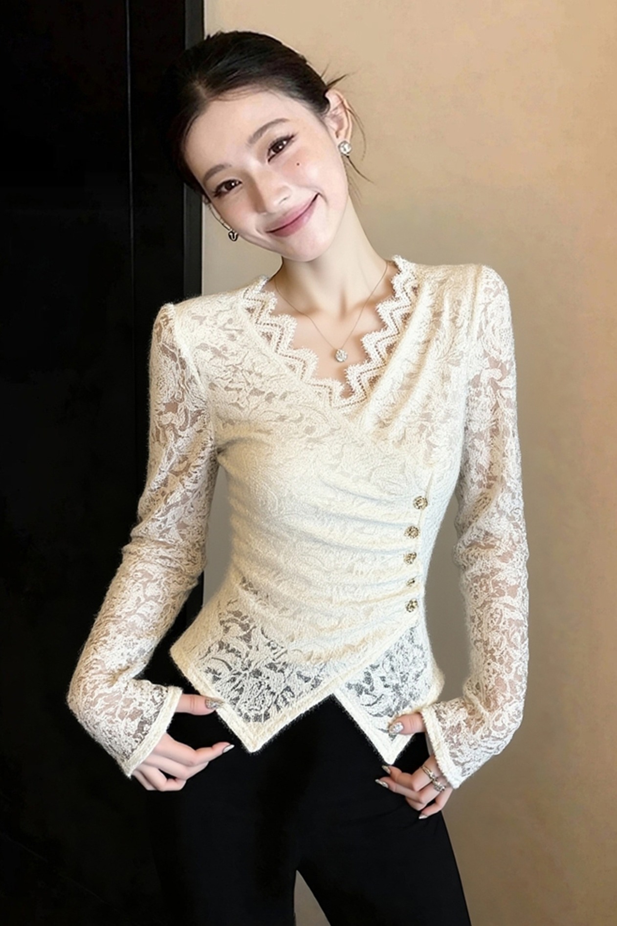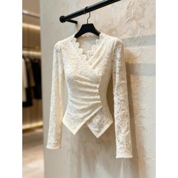 FA50818# 白色蕾丝上衣新款爆款名媛高级感独特漂亮法式收腰内搭衬衫女 服裝批發女裝批發服飾貨源