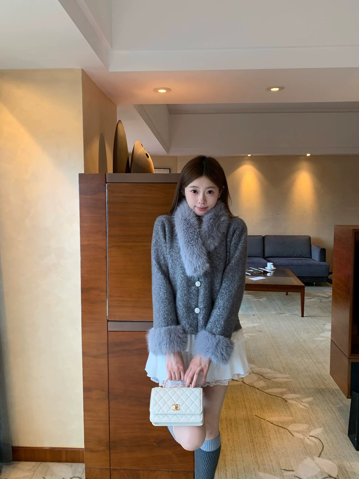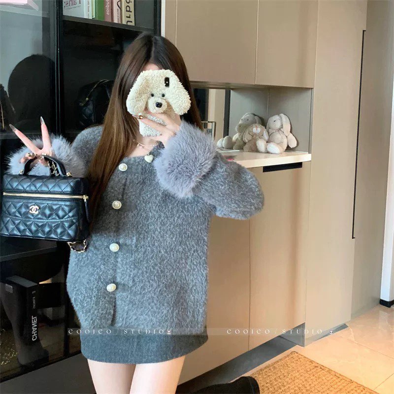 FA51186# 秋冬新款法式小香风毛衣外套女宽松洋气厚仿貂绒针织开衫上衣 服裝批發女裝批發服飾貨源