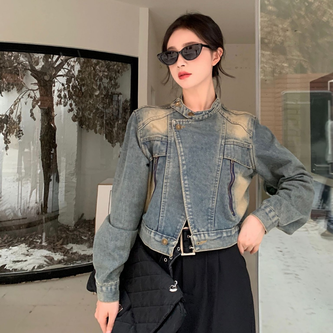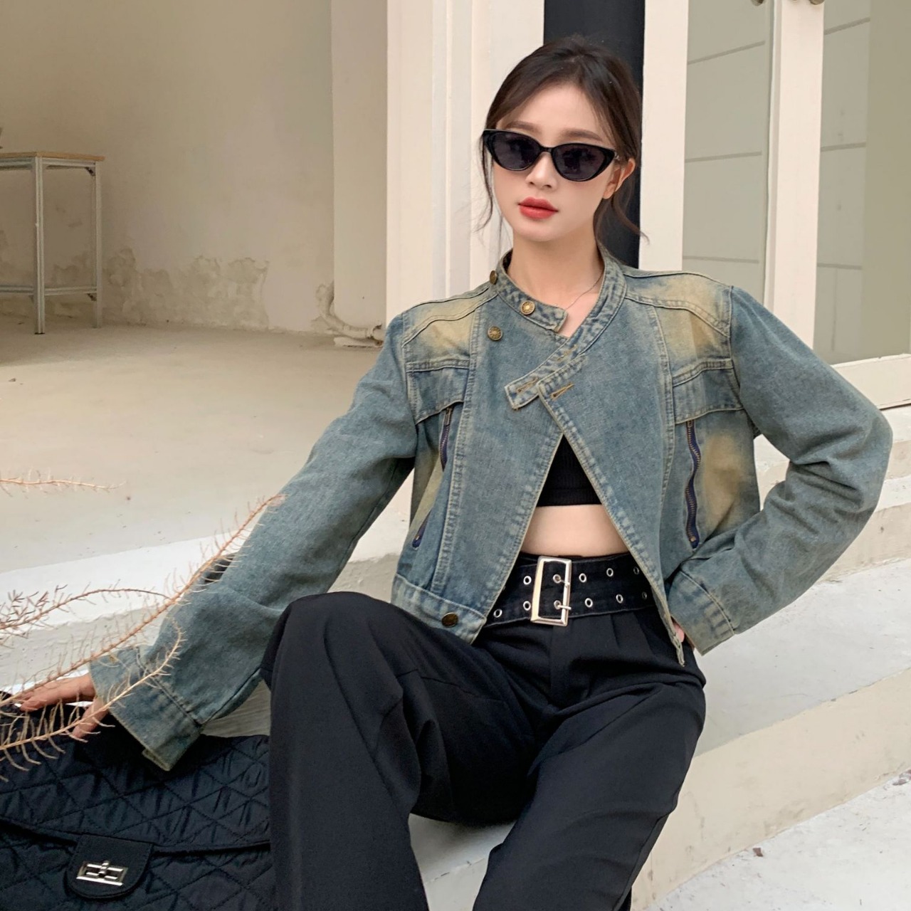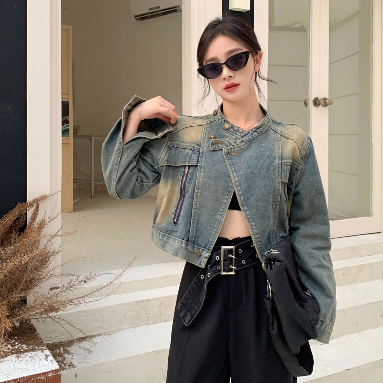 FA51230# 新款机车返潮复古宽松牛仔外套小个子春秋复古港风立领水洗外套 服裝批發女裝批發服飾貨源