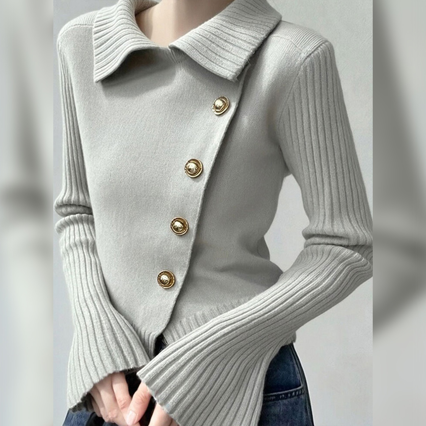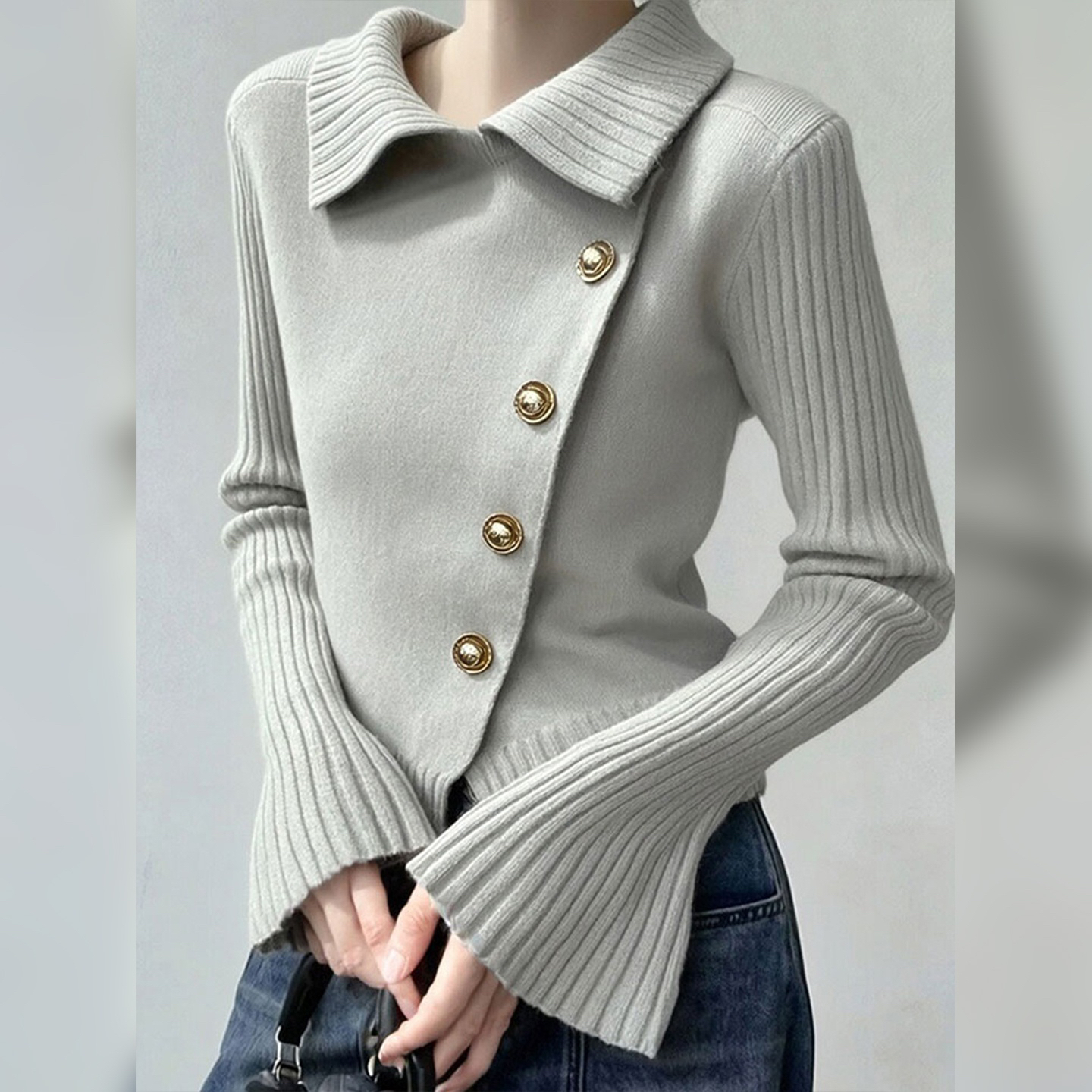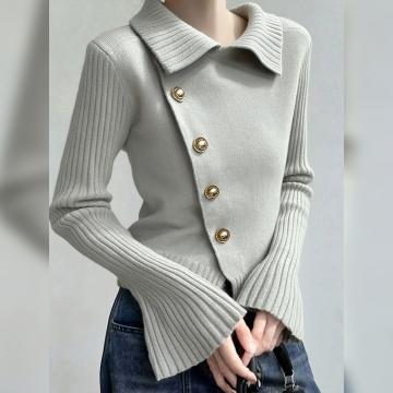 FA51254# 冬季轻奢翻领针织衫流行百搭纯色上衣优雅气质毛衣时尚加厚女 服裝批發女裝批發服飾貨源