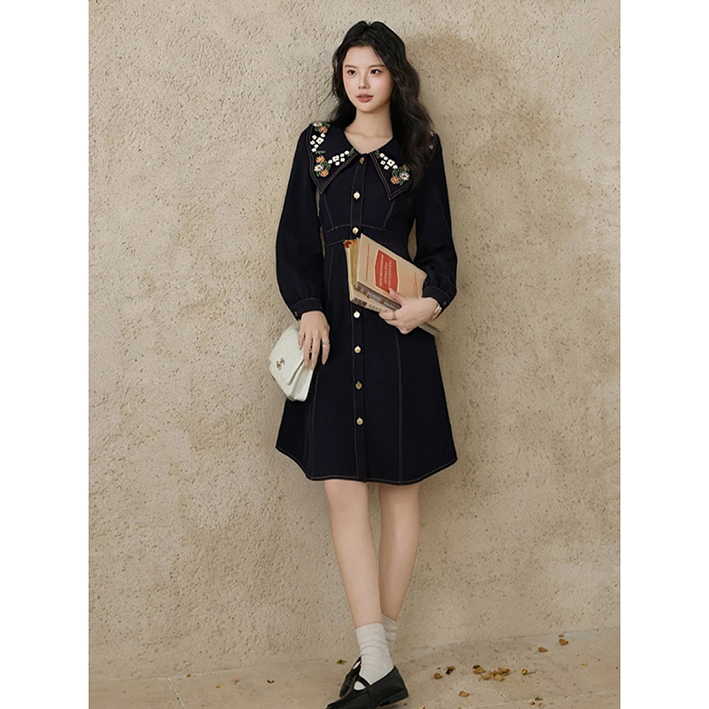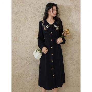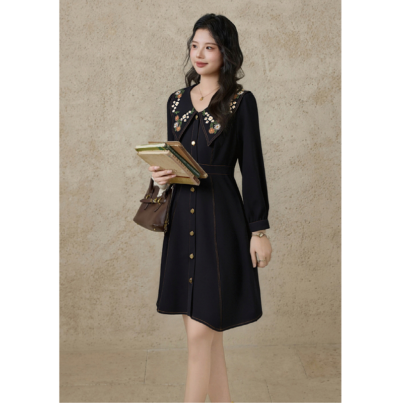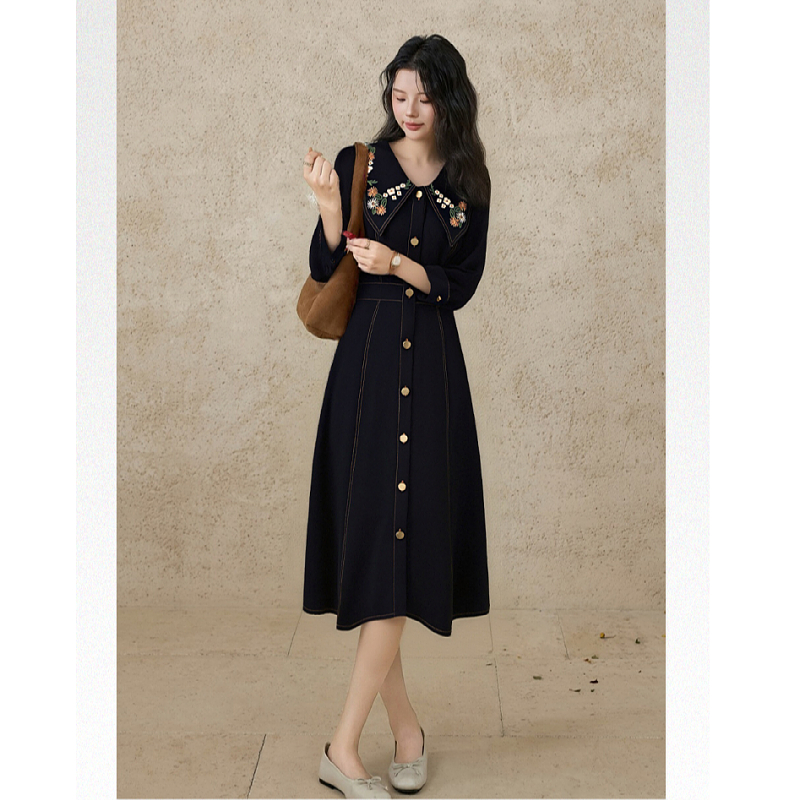 FA51489# 大码女装胖MM早秋设计感遮肉韩系中长款压线显瘦连衣裙 服裝批發女裝批發服飾貨源