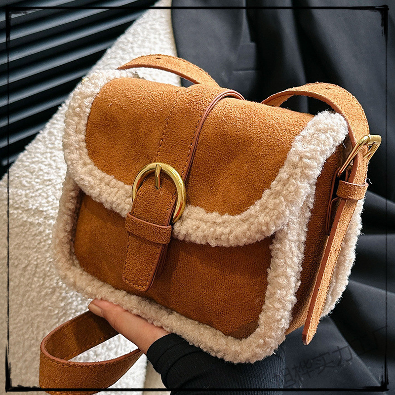 TJ2181# 小个子外出羊羔毛女包毛毛包包复古单肩斜挎包百搭小方包