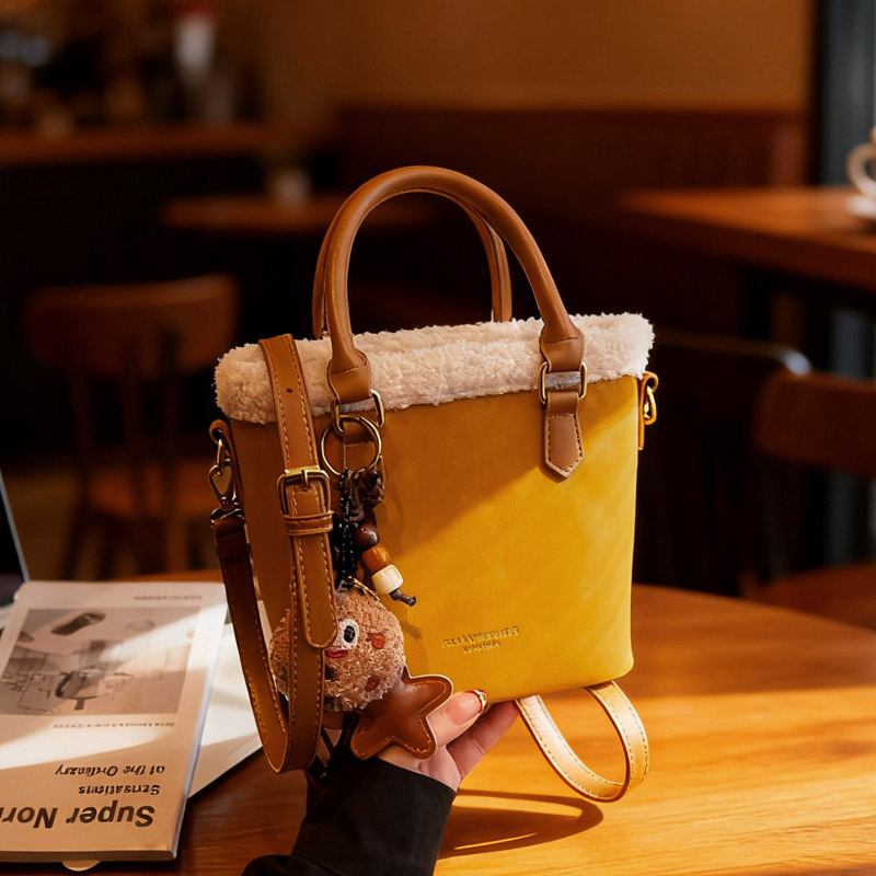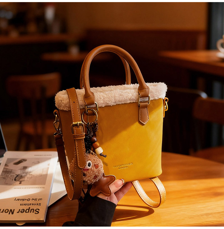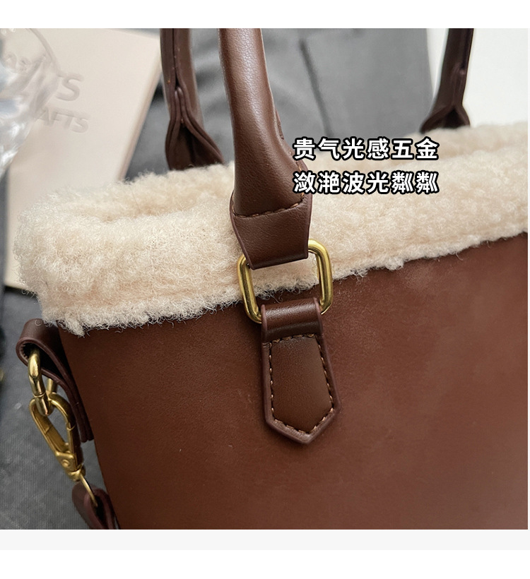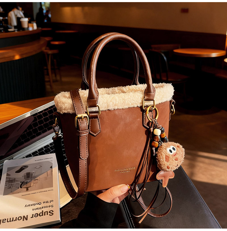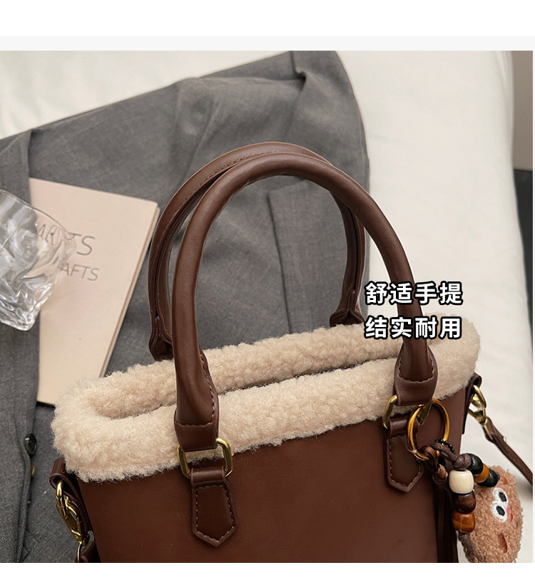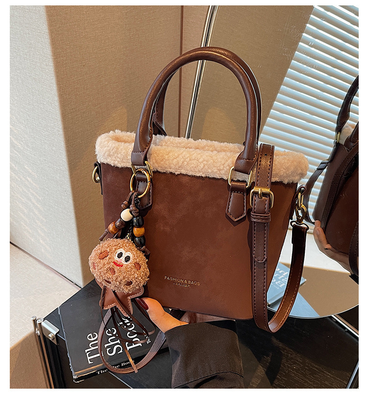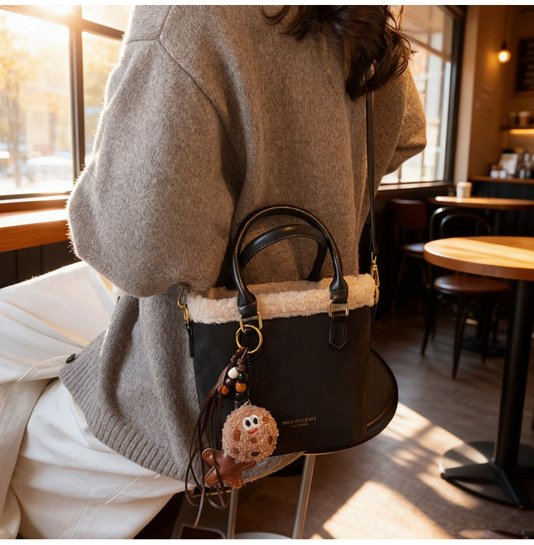 TJ2178# 百搭时尚简约羊羔毛单肩包复古磨砂水桶包大容量高级感绒面手提包
