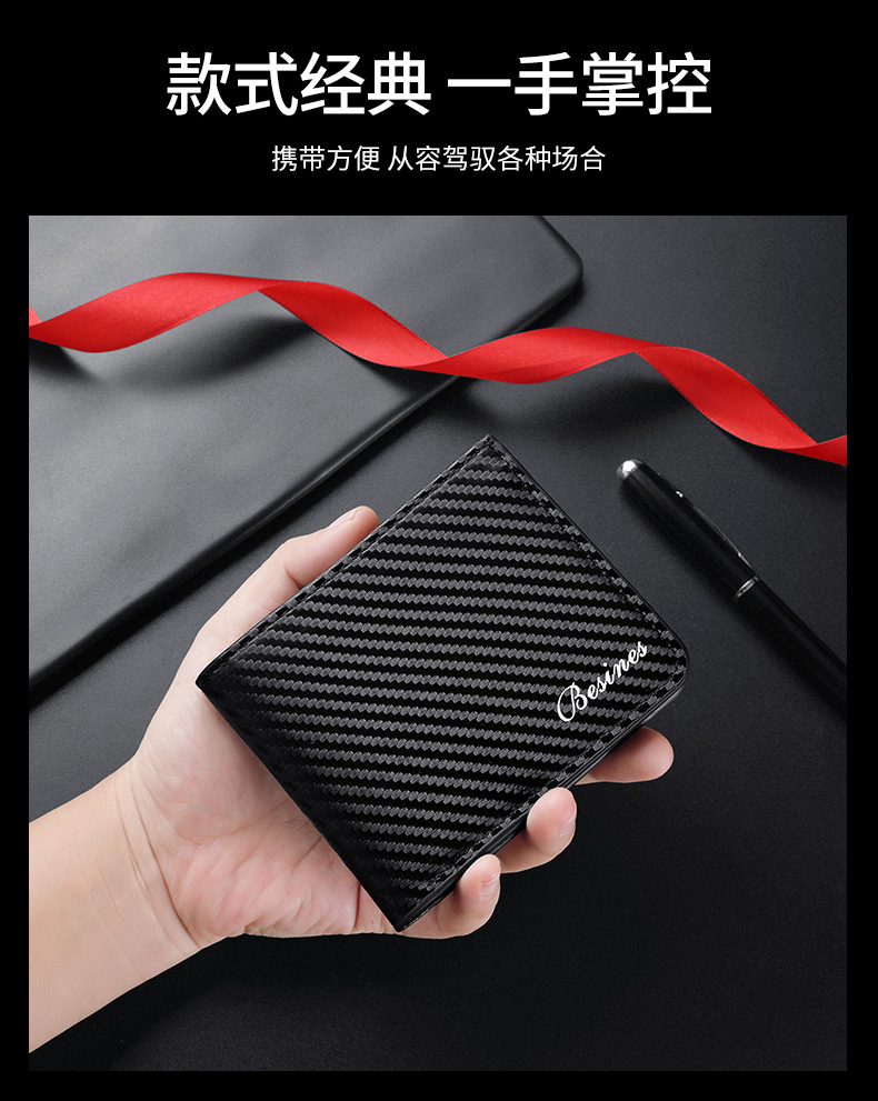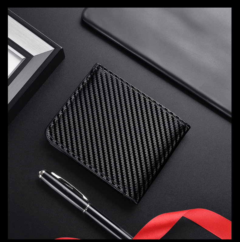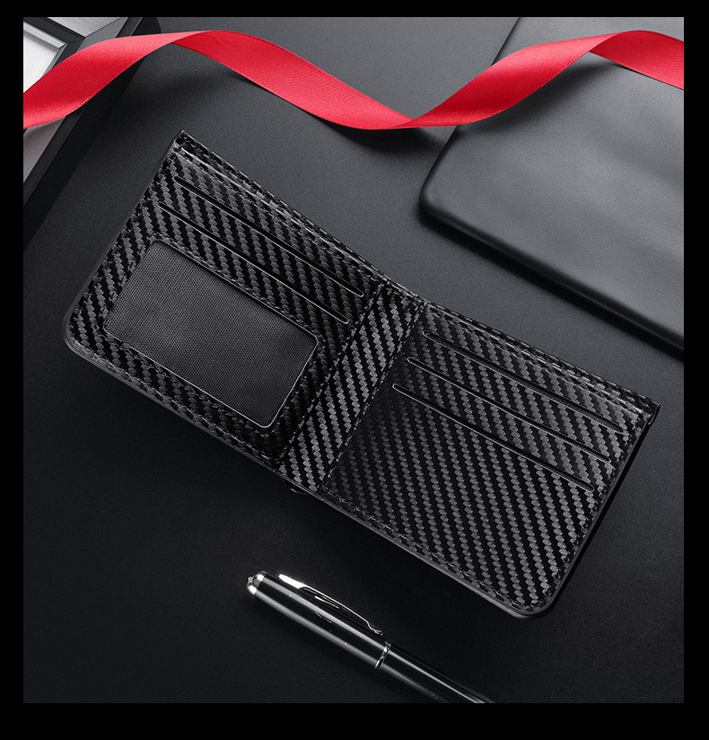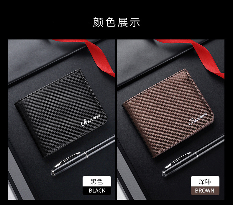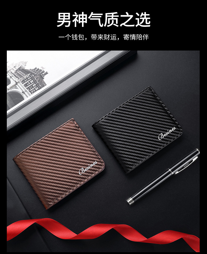 TJ2199# 新款轻奢复古男士短款碳纤维纹钱包防磁卡包厂家批发可印制logo