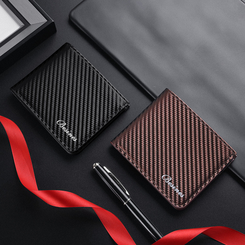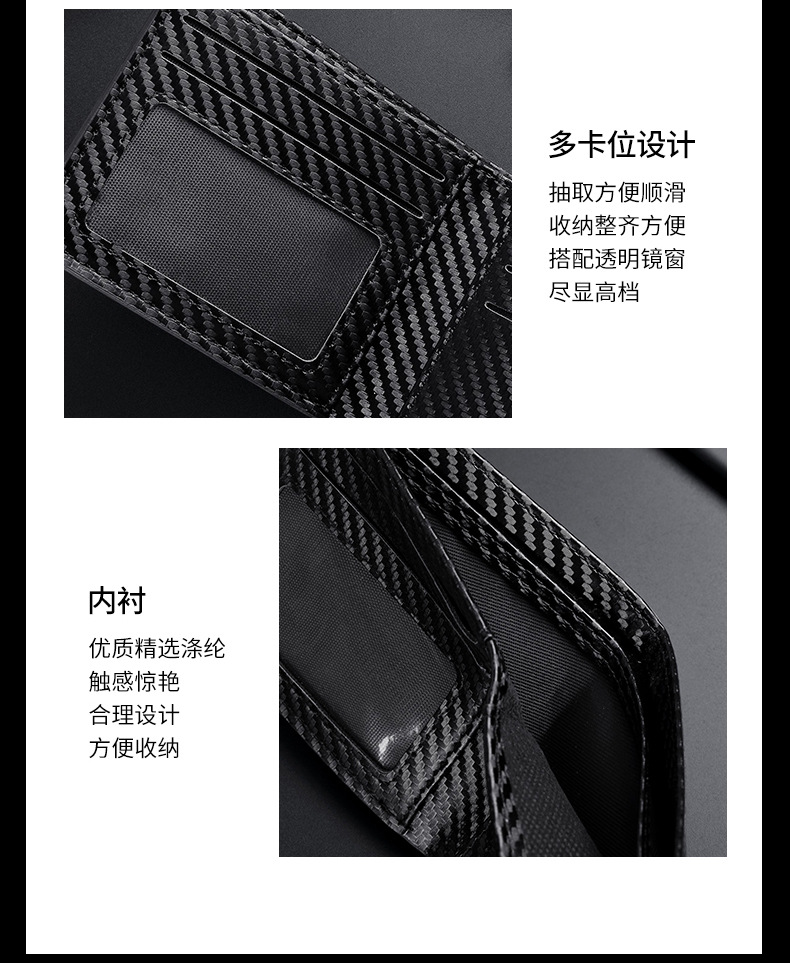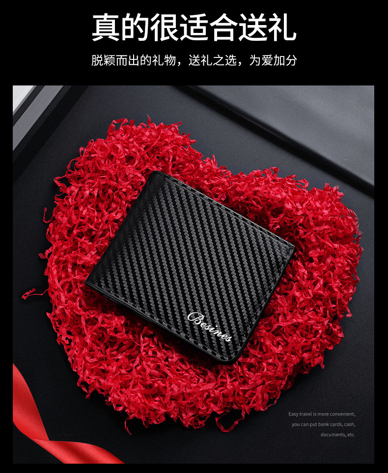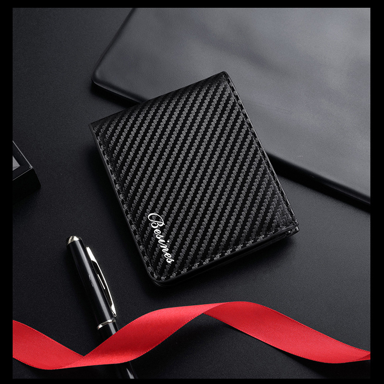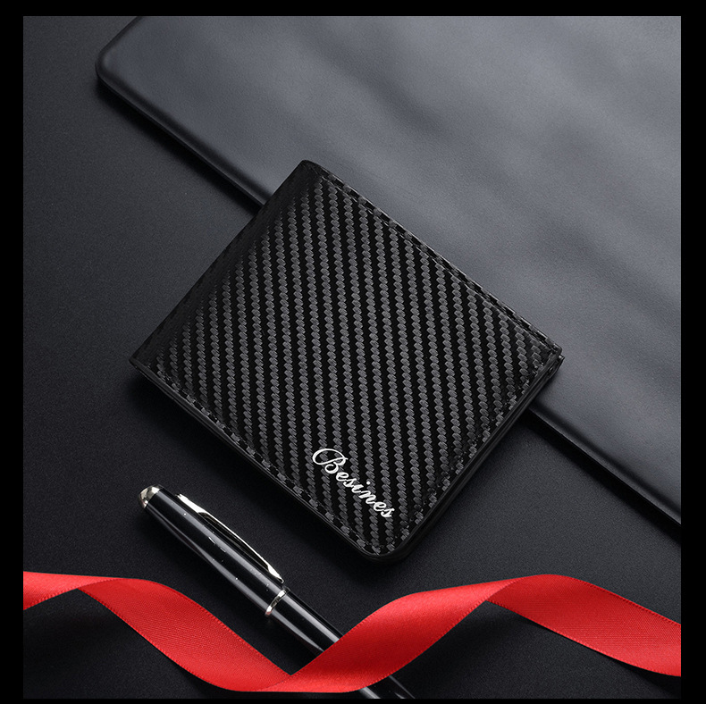 TJ2199# 新款轻奢复古男士短款碳纤维纹钱包防磁卡包厂家批发可印制logo