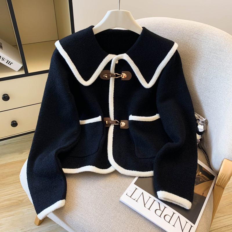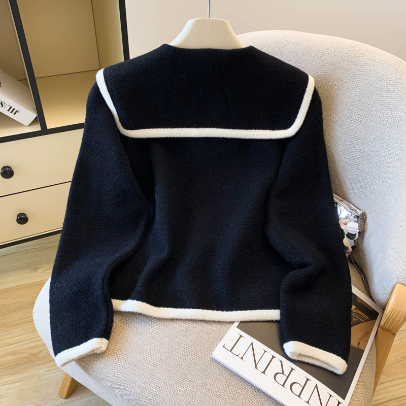 FA54758# 质撞色小香风仿貂绒红色毛衣外套女上衣设计感小众简约 服裝批發女裝批發服飾貨源