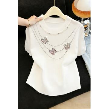 FA54782# 法式时尚圆领钉珠蝴蝶烫钻百搭短袖上衣针织衫女春夏新款 服裝批發女裝批發服飾貨源