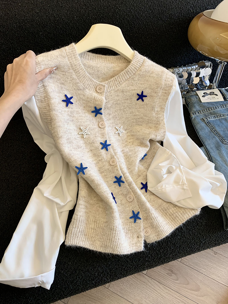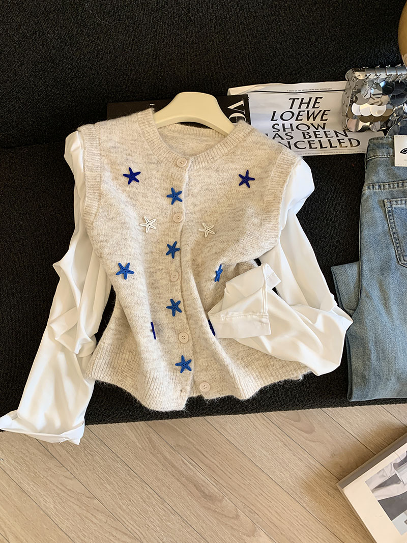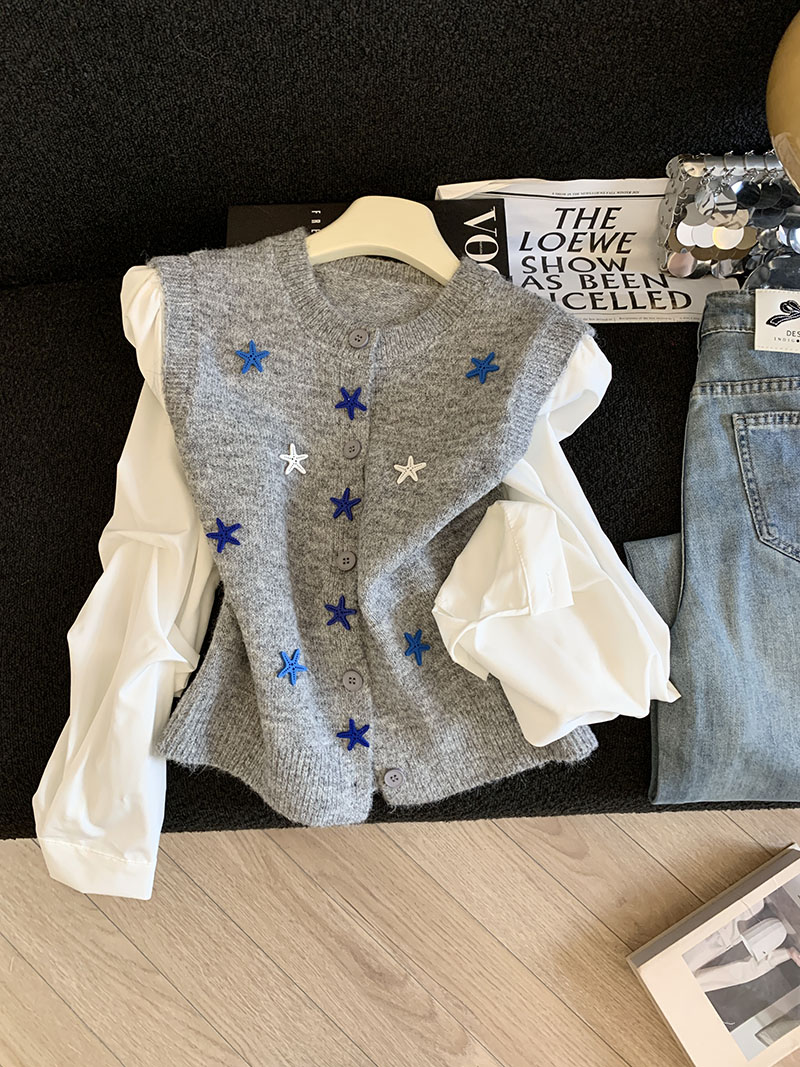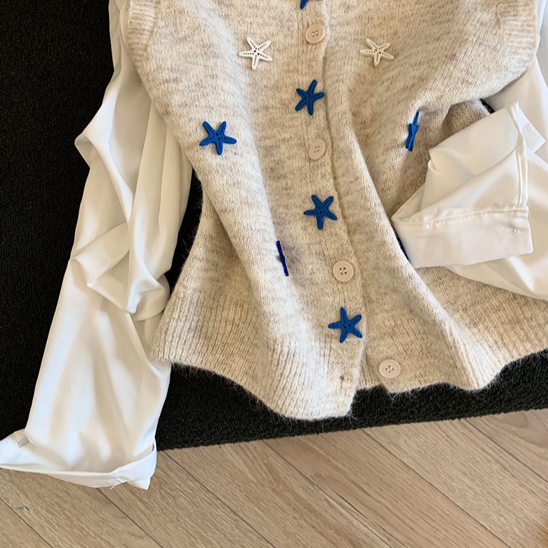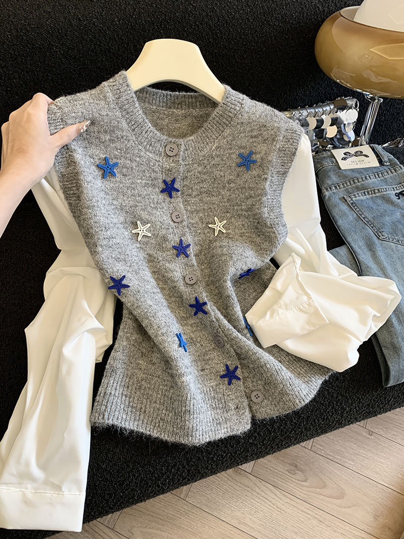 FA54859# 星星刺绣毛衣女款新款冬季多巴胺穿搭慵懒软糯针织上衣 服裝批發女裝批發服飾貨源