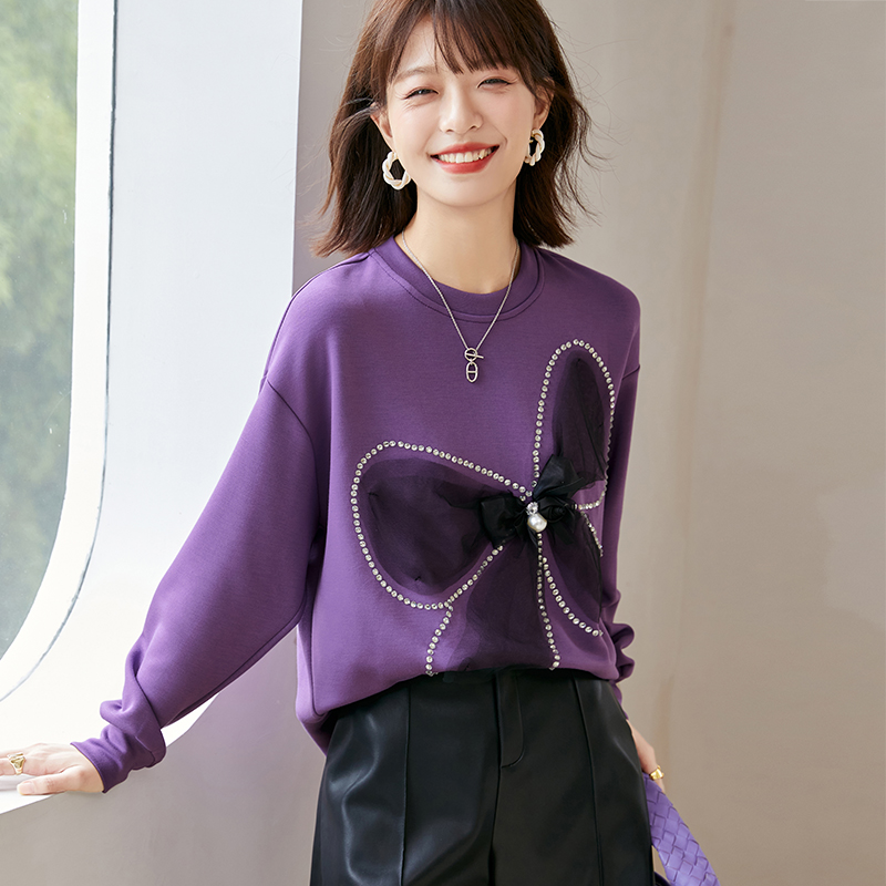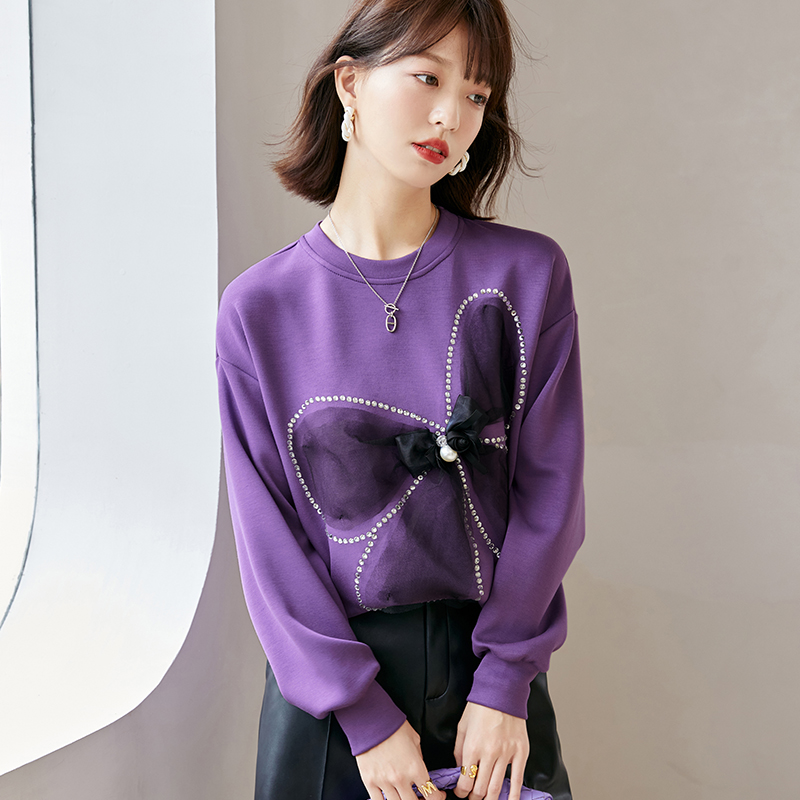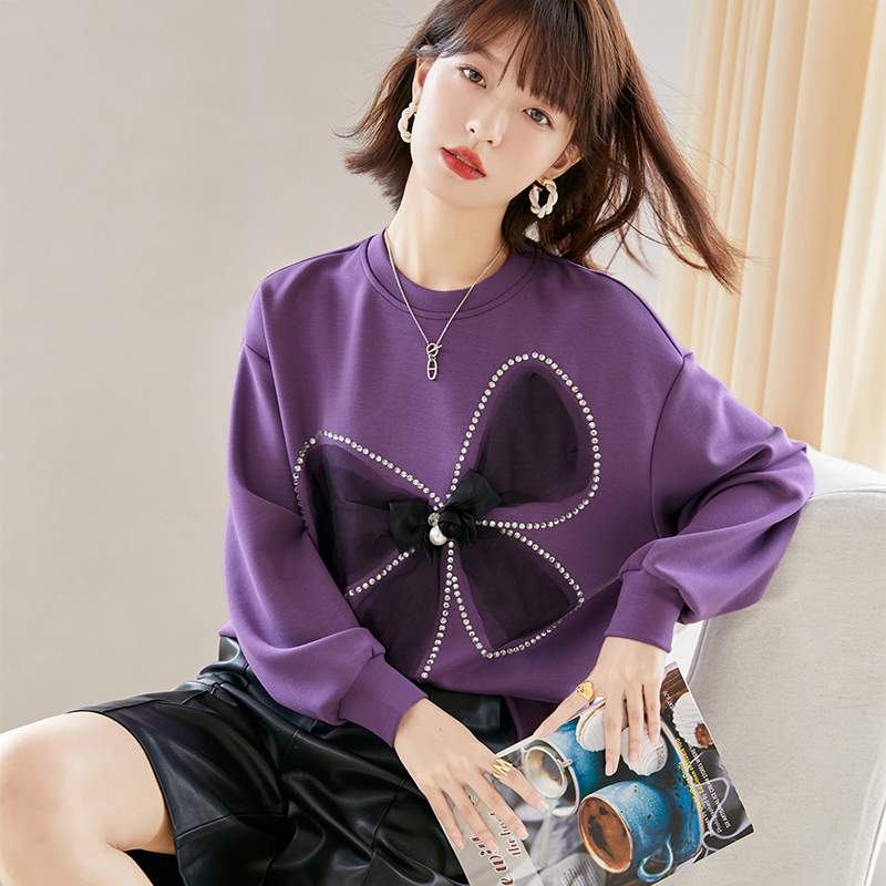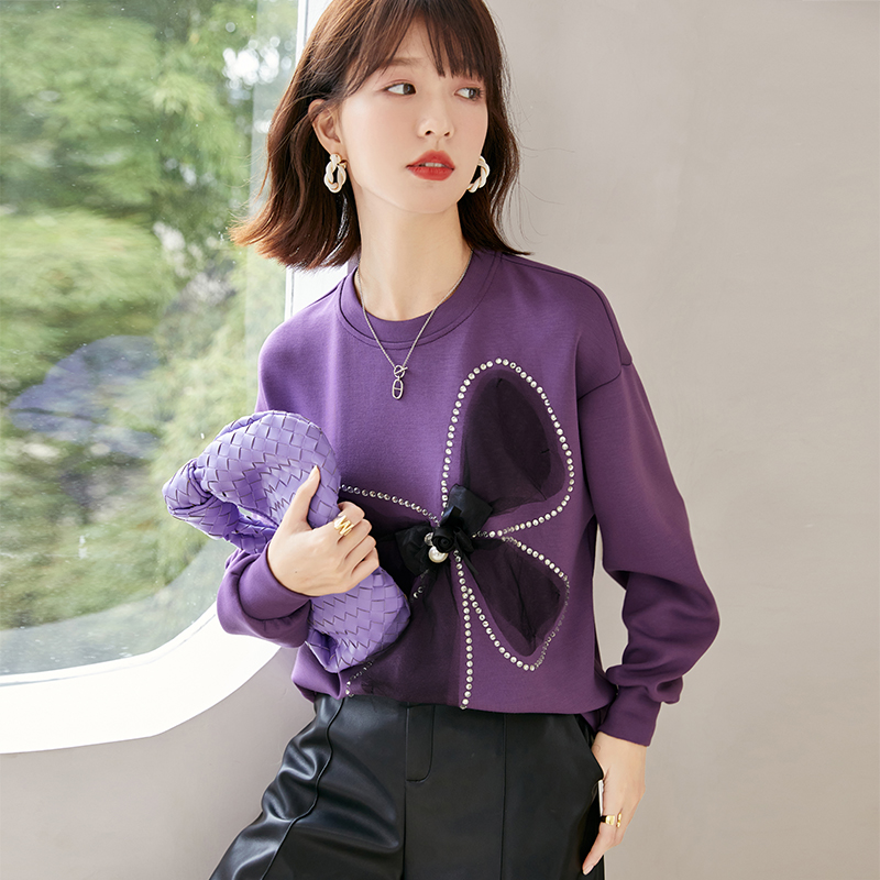 FA55047# 春款休闲圆领立体网纱蝴蝶结烫砖宽松减龄卫衣 服裝批發女裝批發服飾貨源
