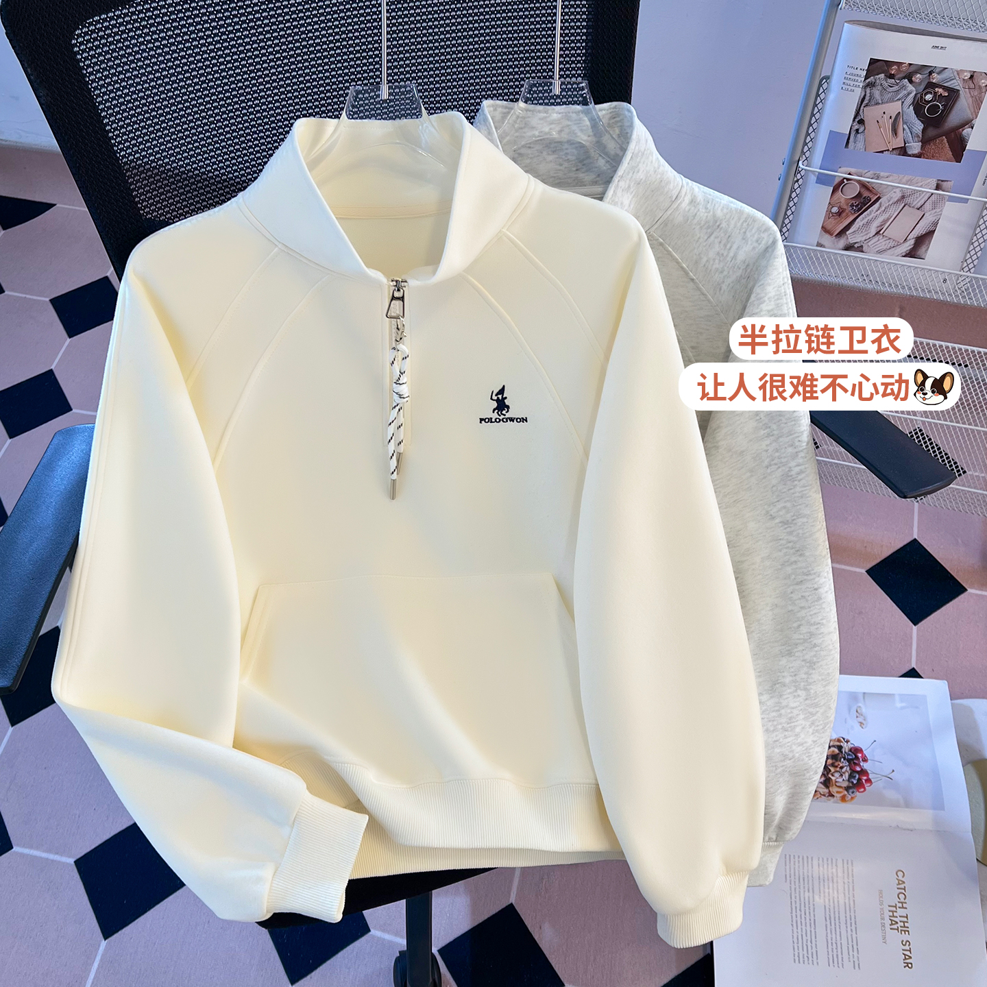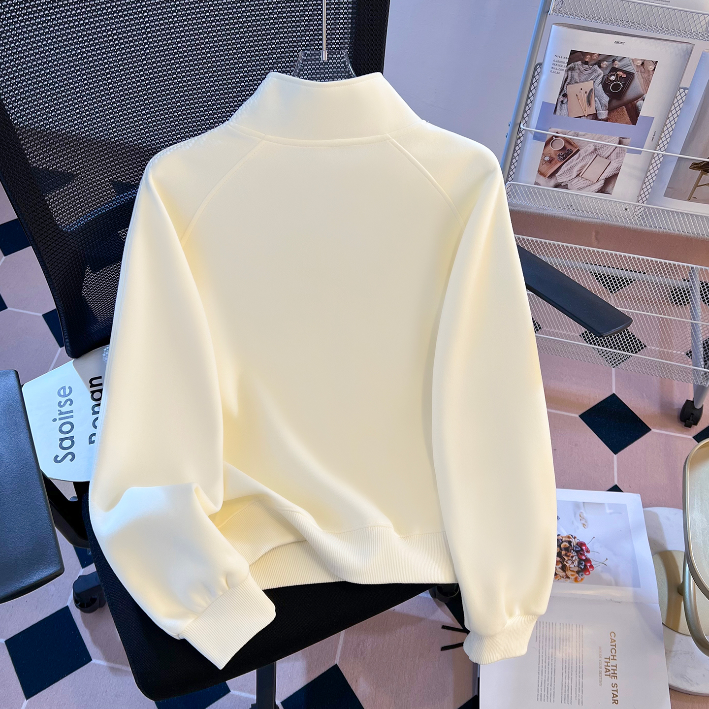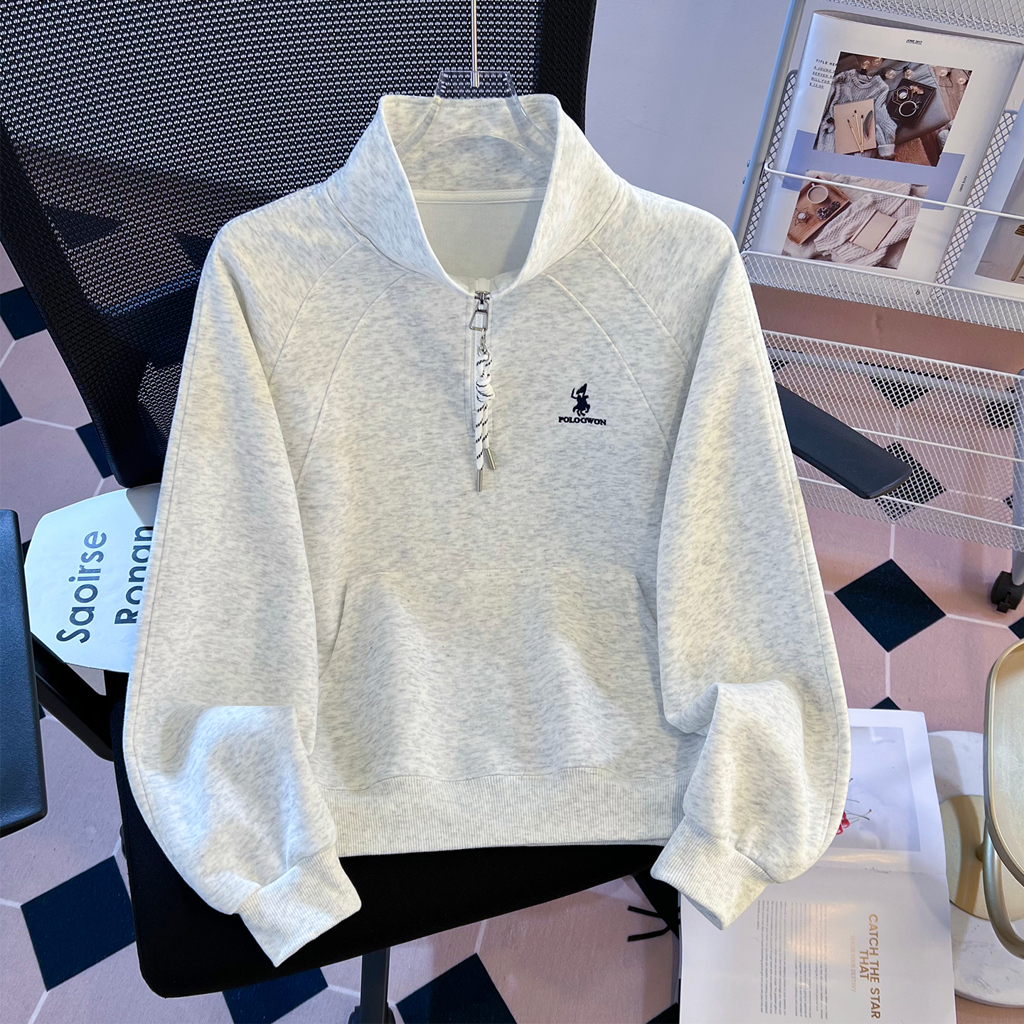 FA55143# 早春盐奶系新麻花绳半拉链立领温柔休闲时尚设计感卫衣女 服裝批發女裝批發服飾貨源