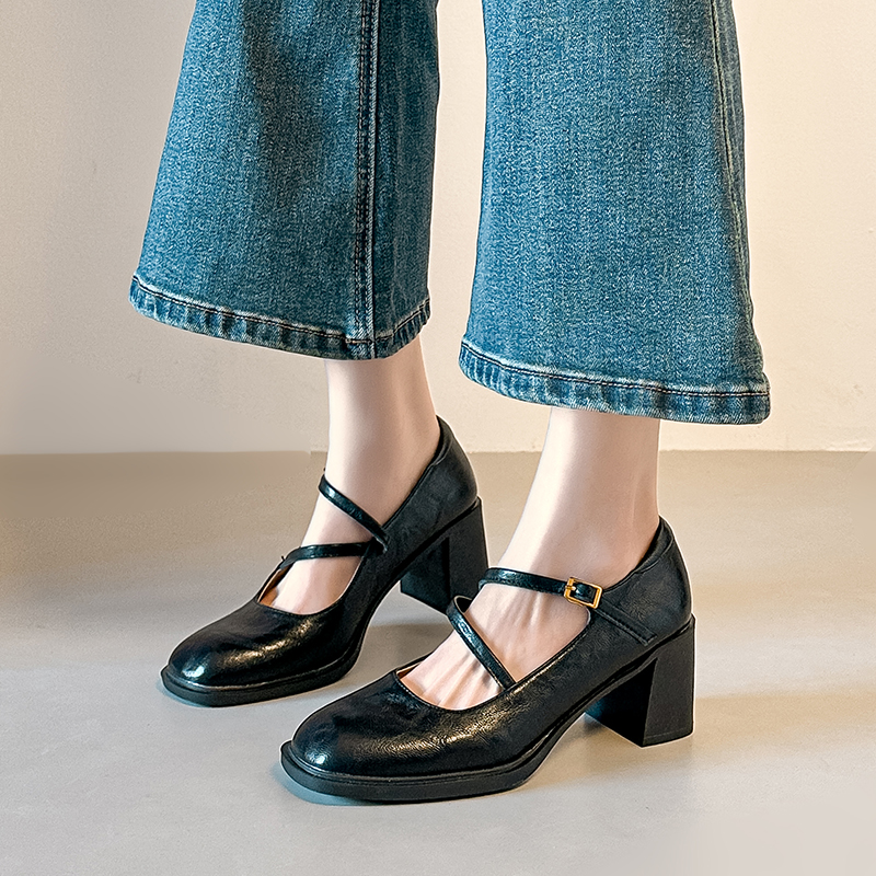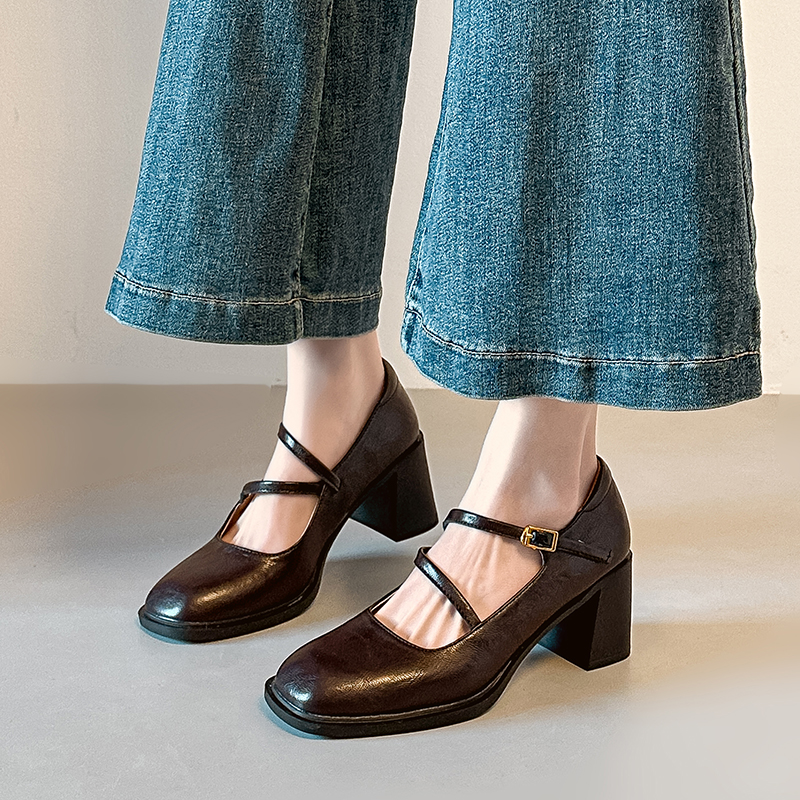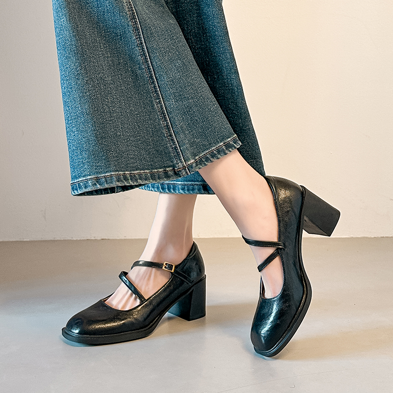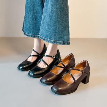 X-32972#复古方头粗跟玛丽珍春季单鞋女百搭高跟鞋 鞋子批发女鞋批发高跟鞋批发