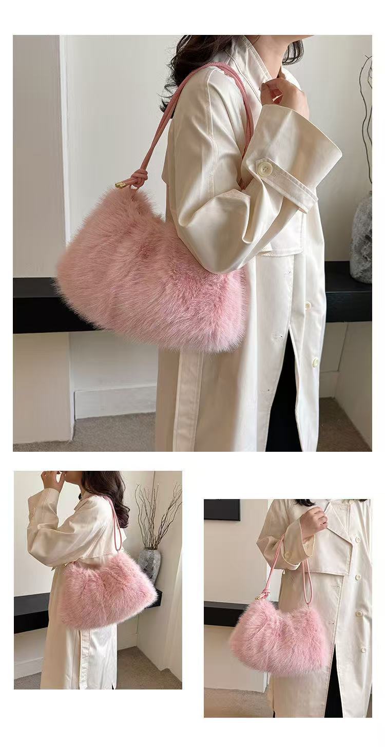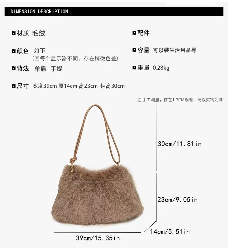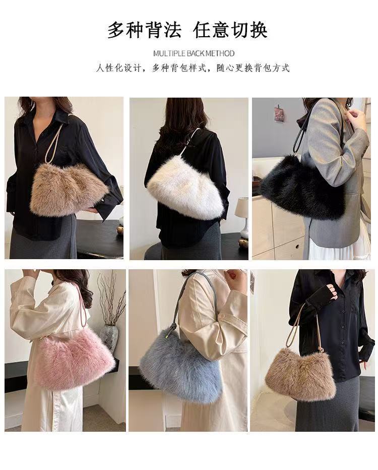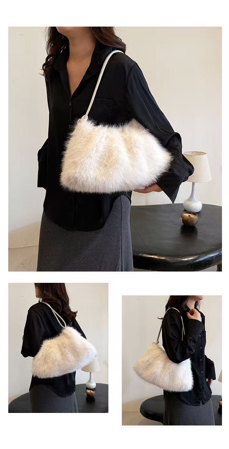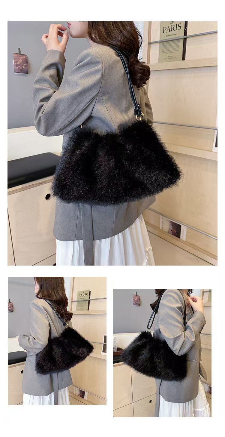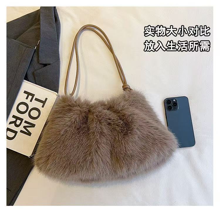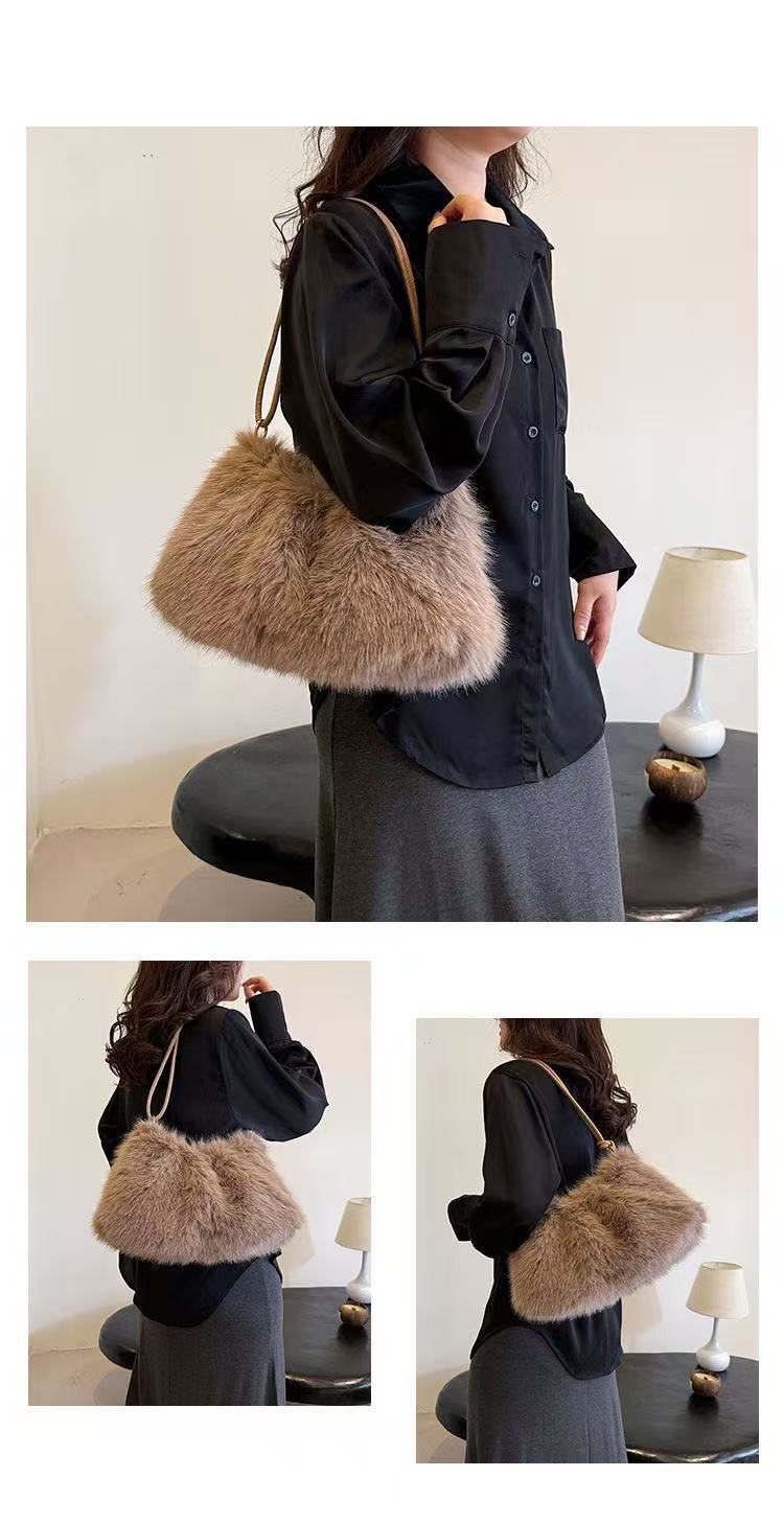 TJ2250# 2025ins潮流时尚毛绒包百搭大容量小众设计感包包韩版高级单肩包