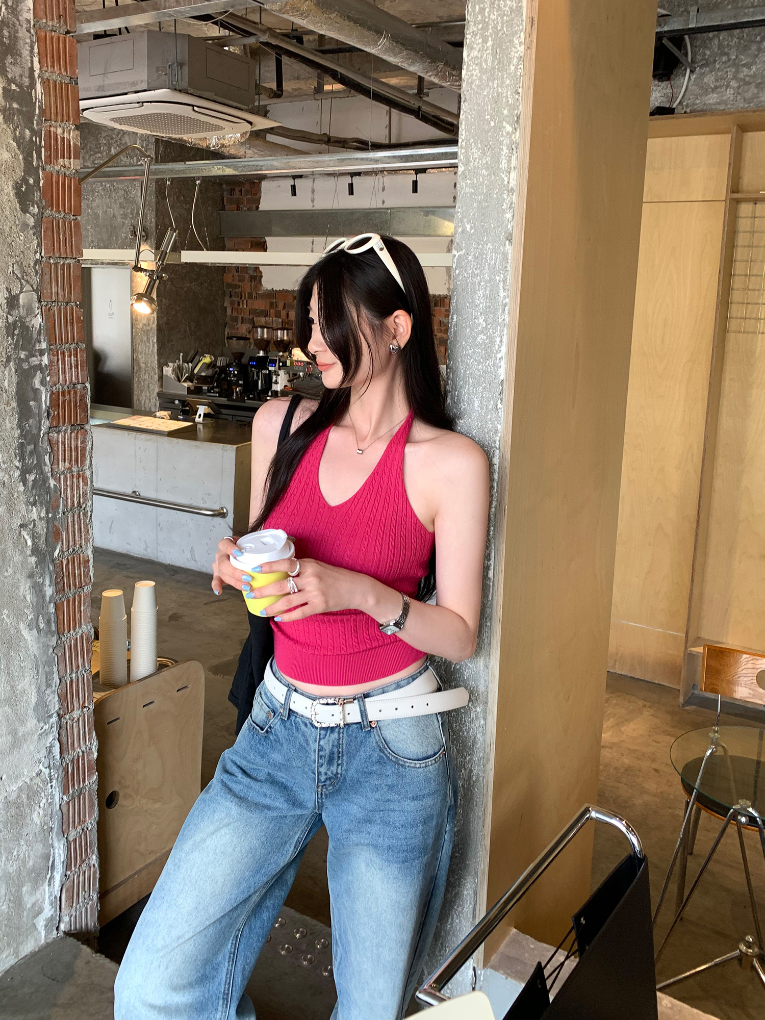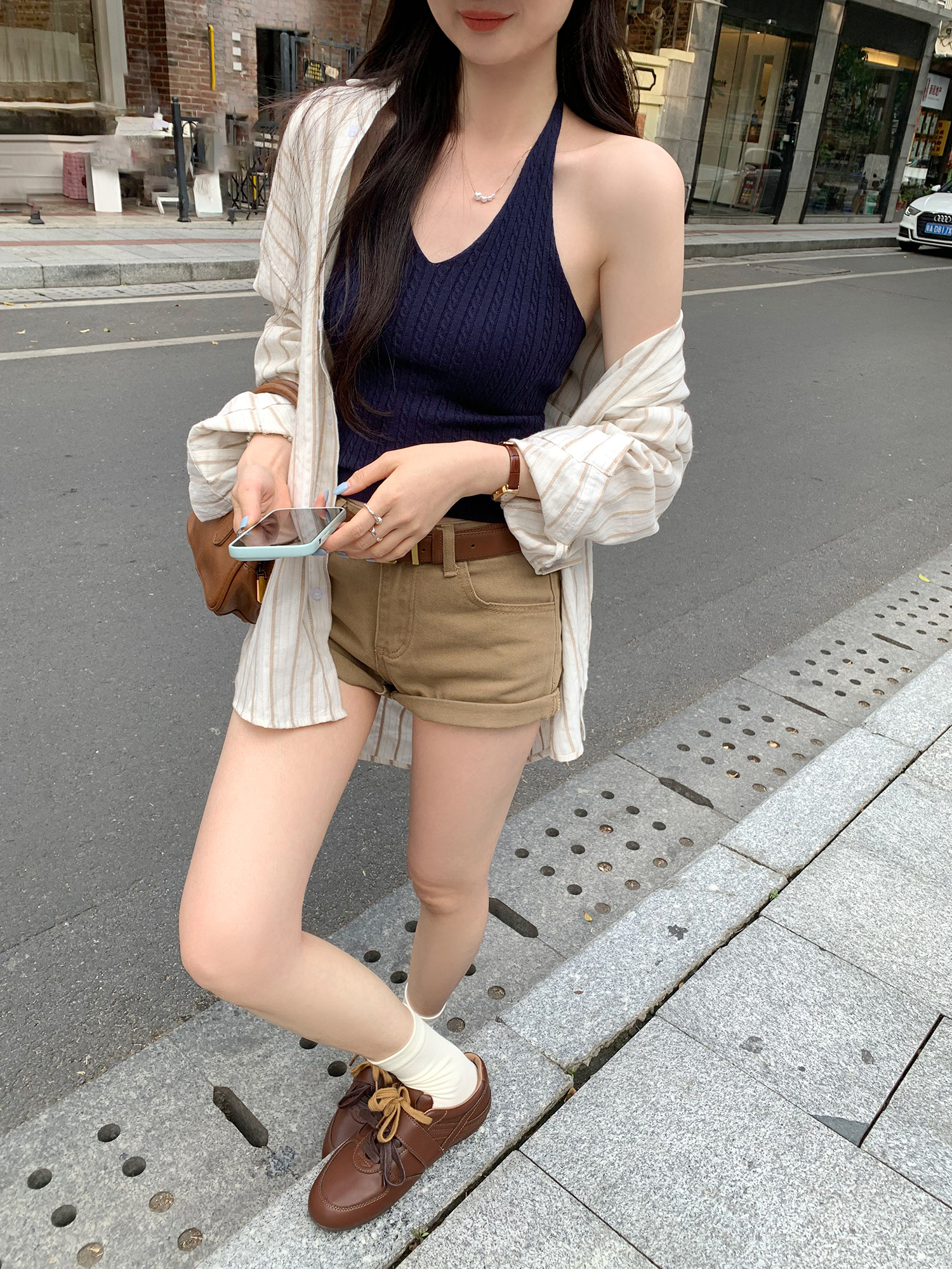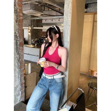 BY10279# 纯欲辣妹V领挂脖针织吊带背心女夏新款外穿修身露背小上衣 服裝批發女裝批發服飾貨源