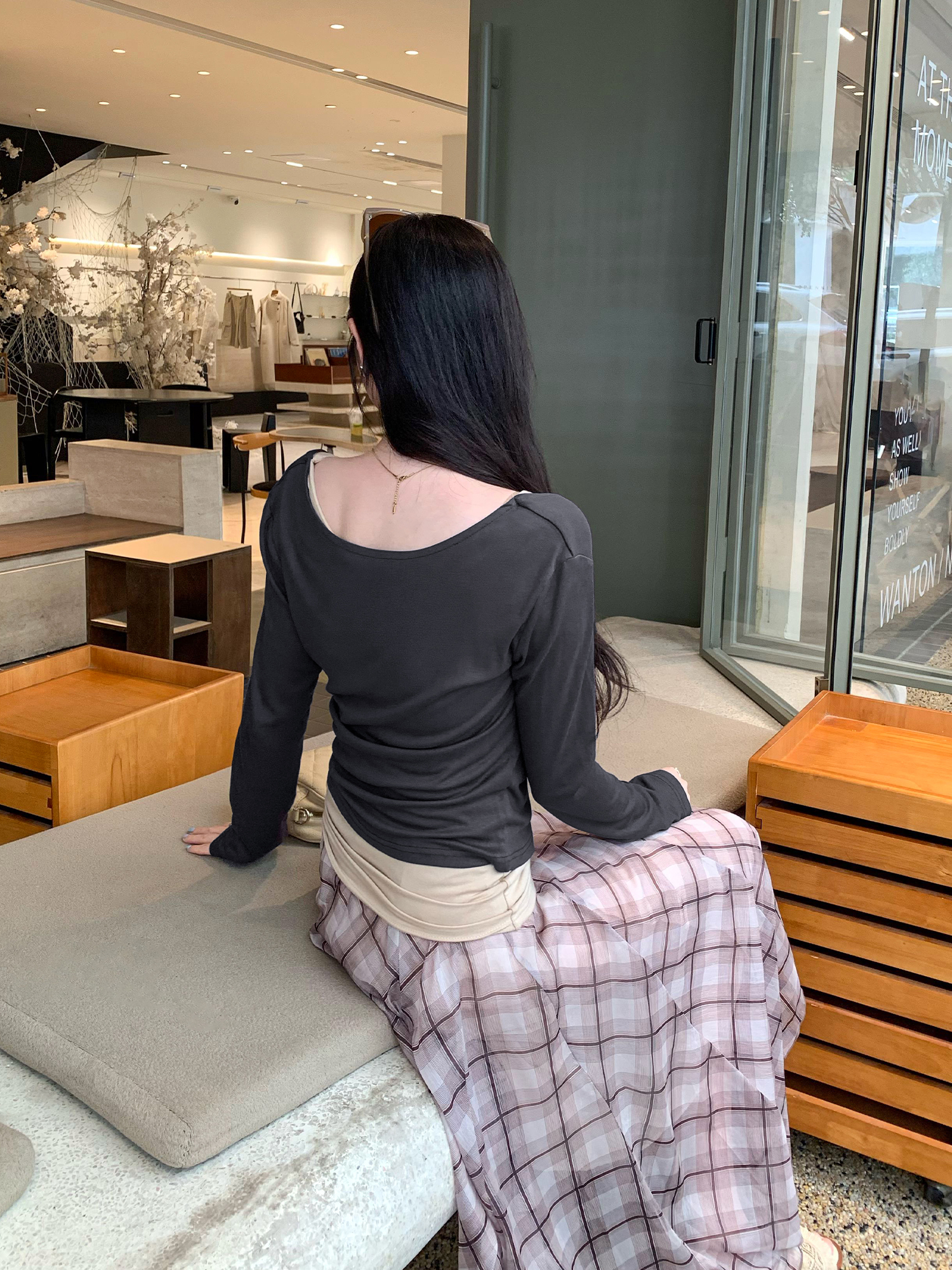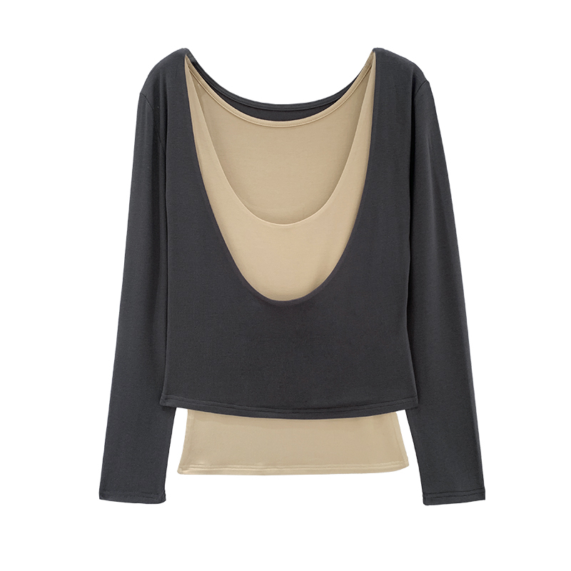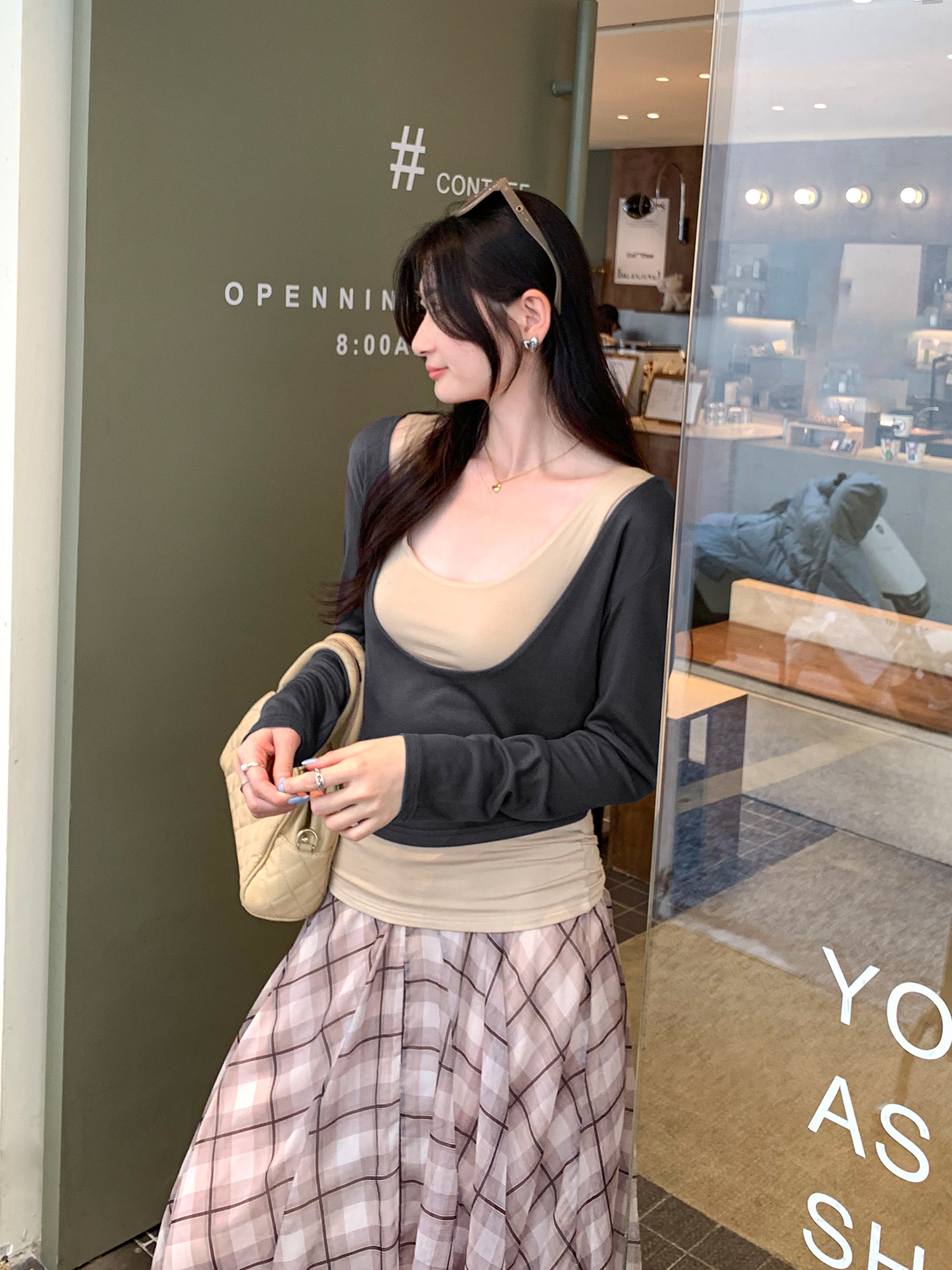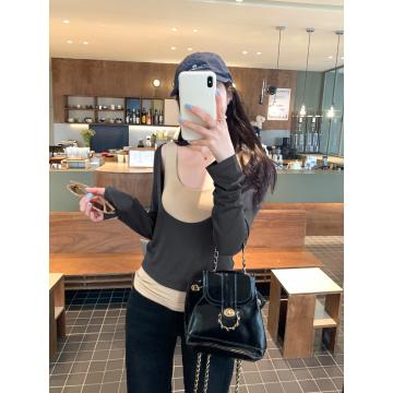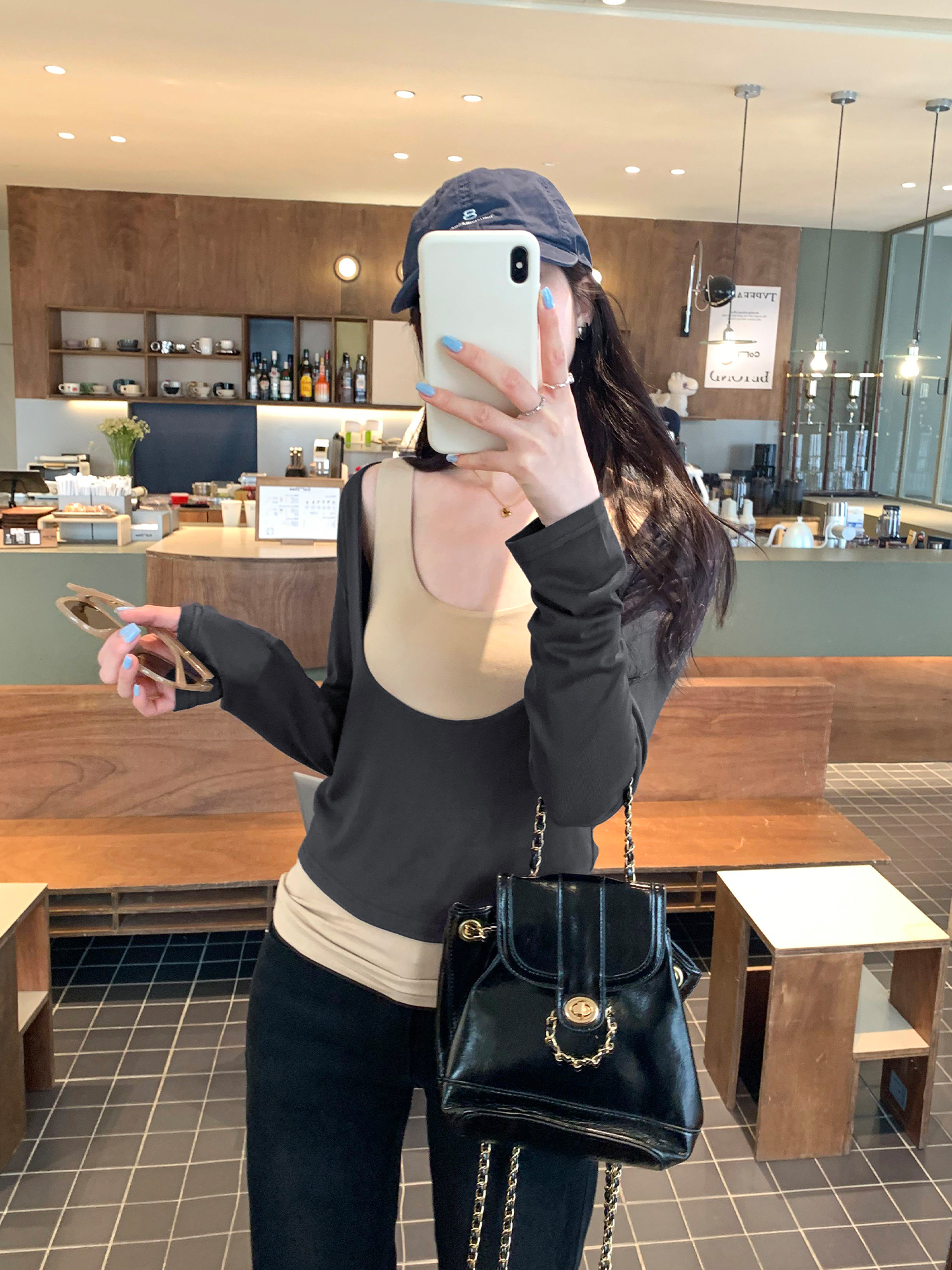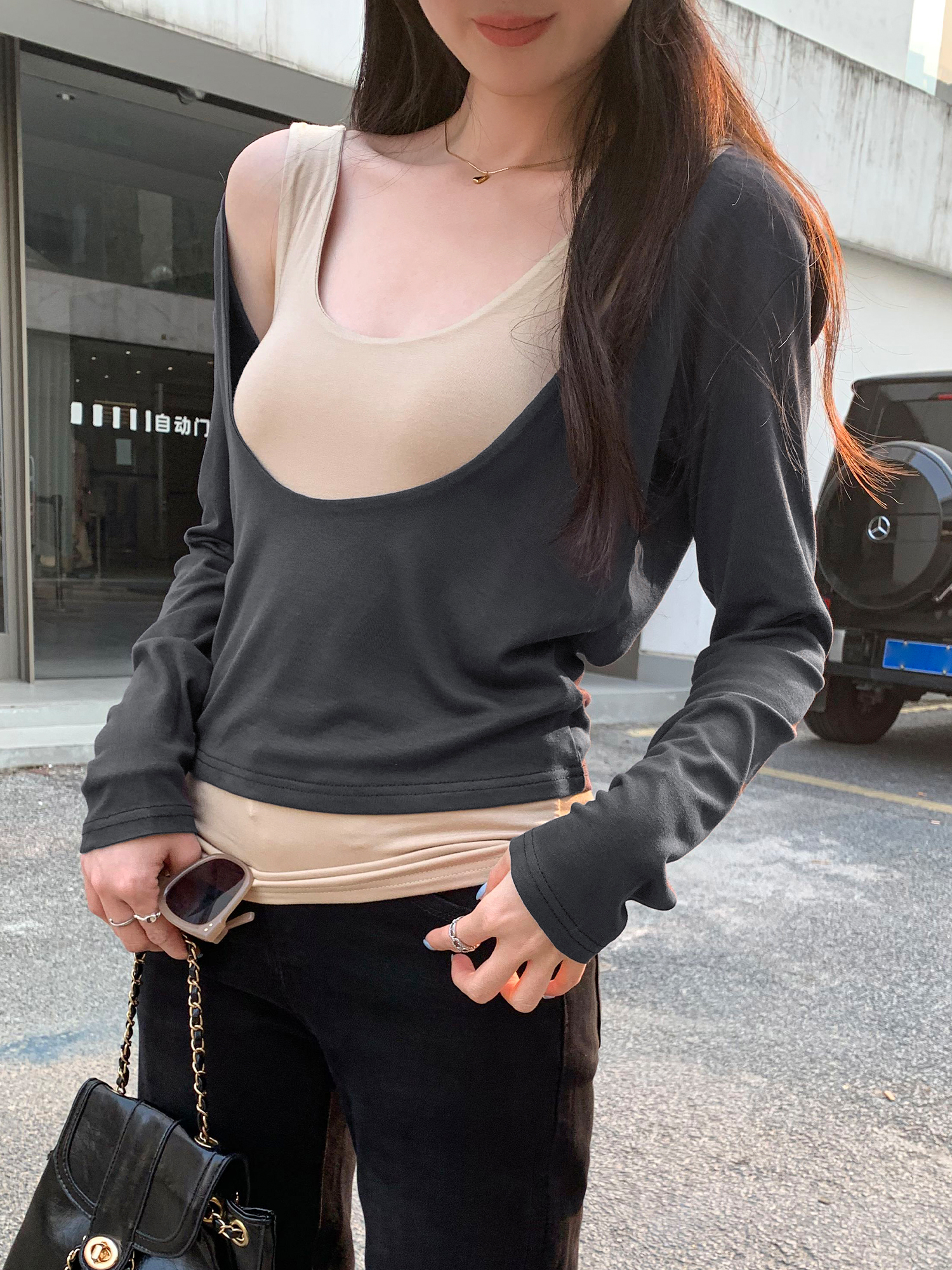 BY10307# 吊带背心深u领假两件设计感内搭打底衫长袖T恤女早春穿搭上衣 服裝批發女裝批發服飾貨源