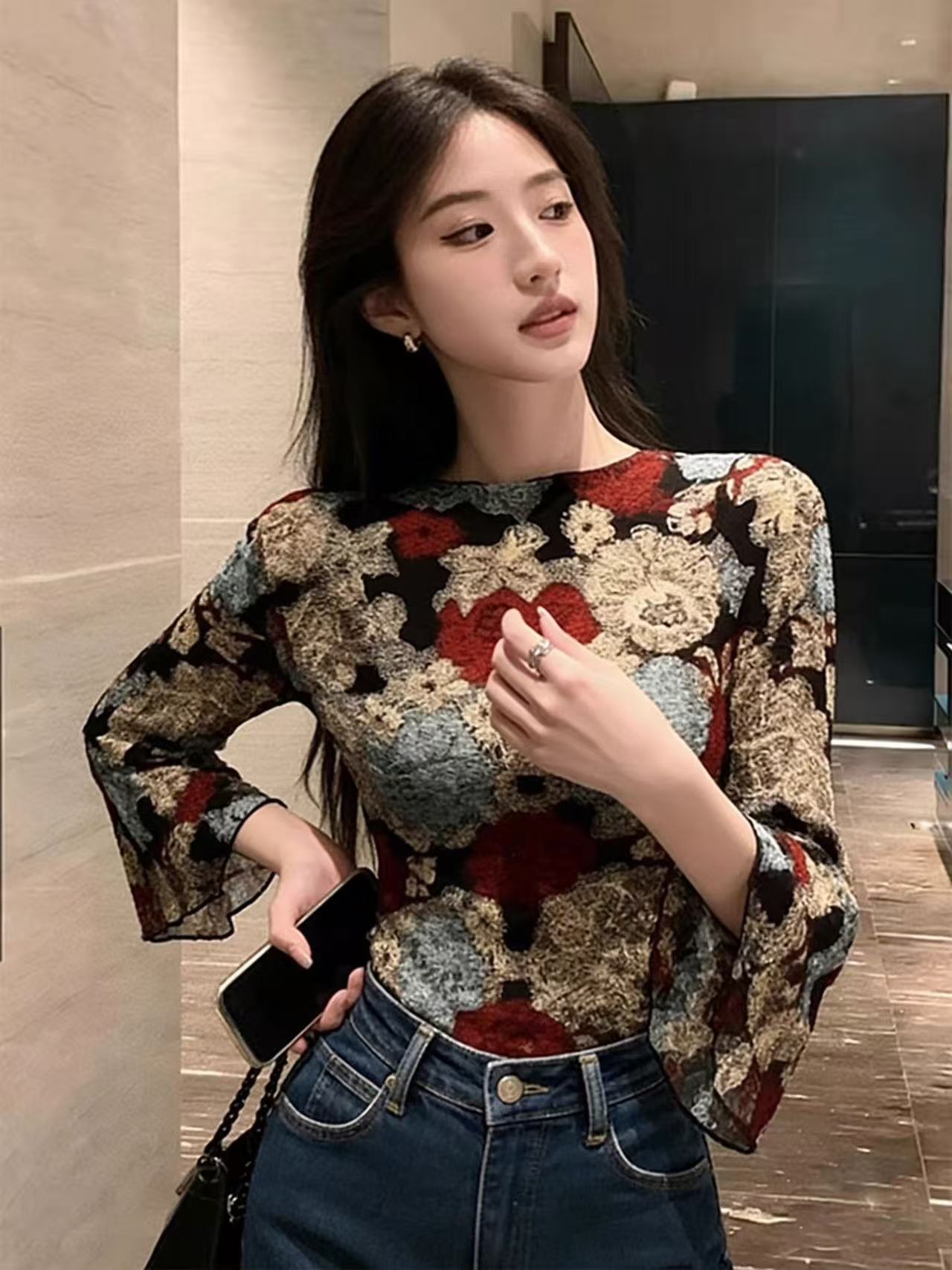 BY10340# 法式别致绝美小上衣高级感超好看轻奢减龄洋气花色雪纺衬衫女 服裝批發女裝批發服飾貨源