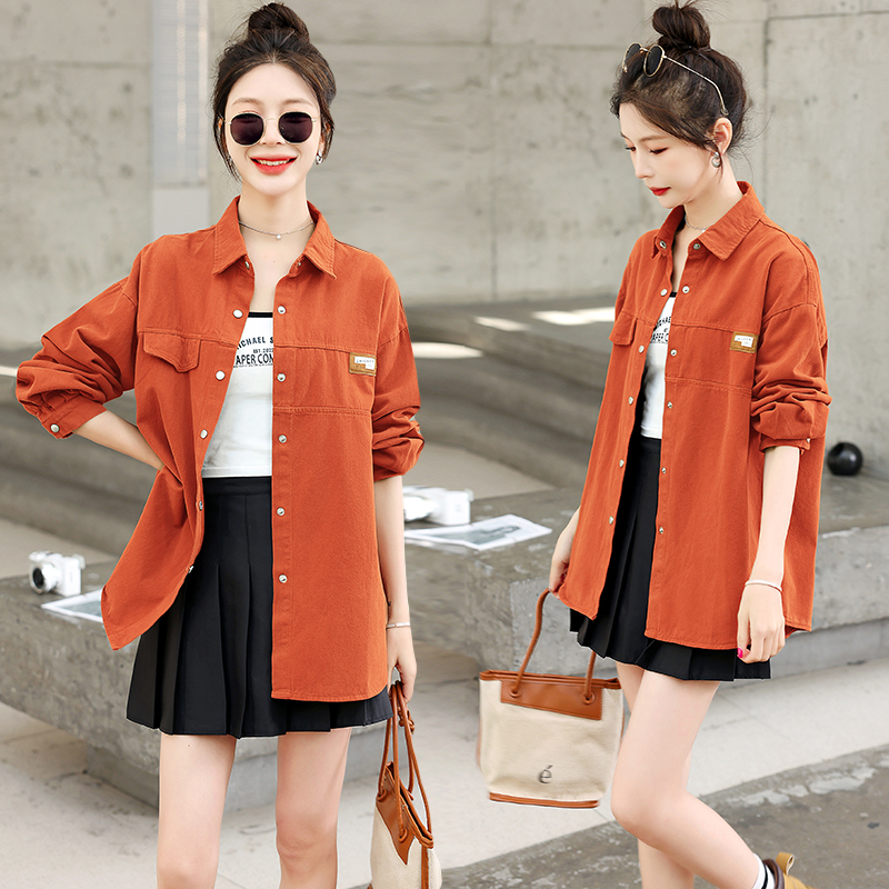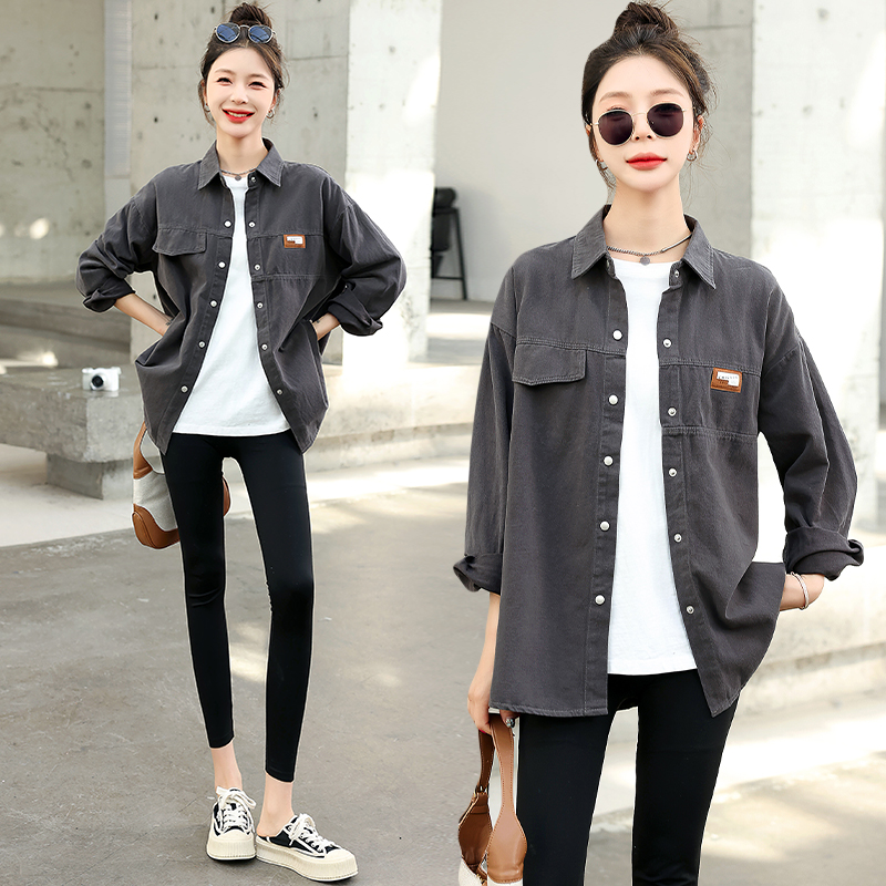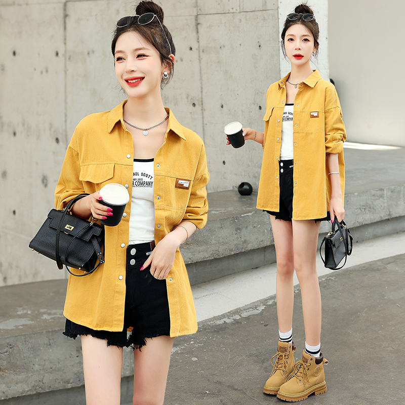 BY10409# 春秋新款韩版宽松彩色衬衫女休闲百搭洗水棉牛仔衬衣外套 服裝批發女裝批發服飾貨源