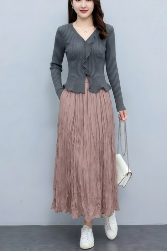 BY10410# 时髦洋气套装春新款V领花边针织毛衣半身裙两件套 服裝批發女裝批發服飾貨源