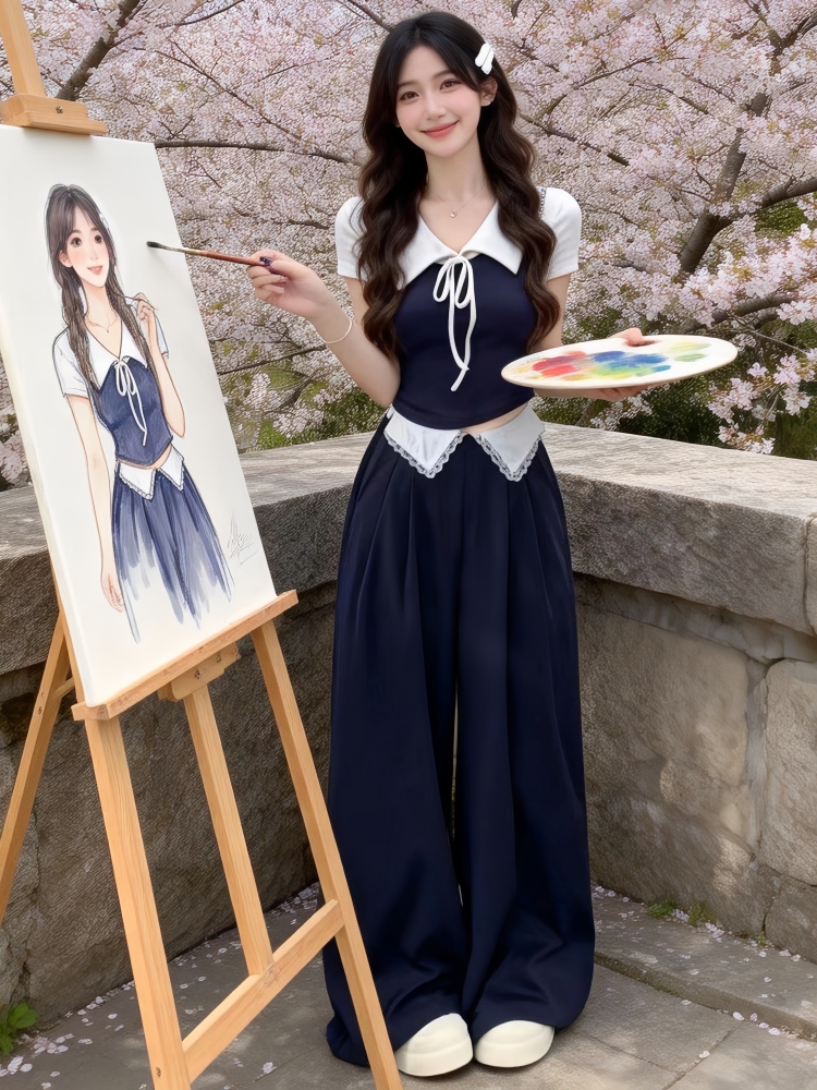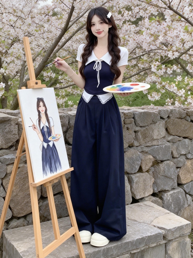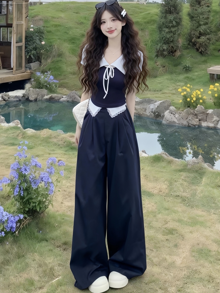BY10436# 夏季绝美多巴胺穿搭一整套不撞款复古短袖上衣休闲裤两件套小个子 服裝批發女裝批發服飾貨源