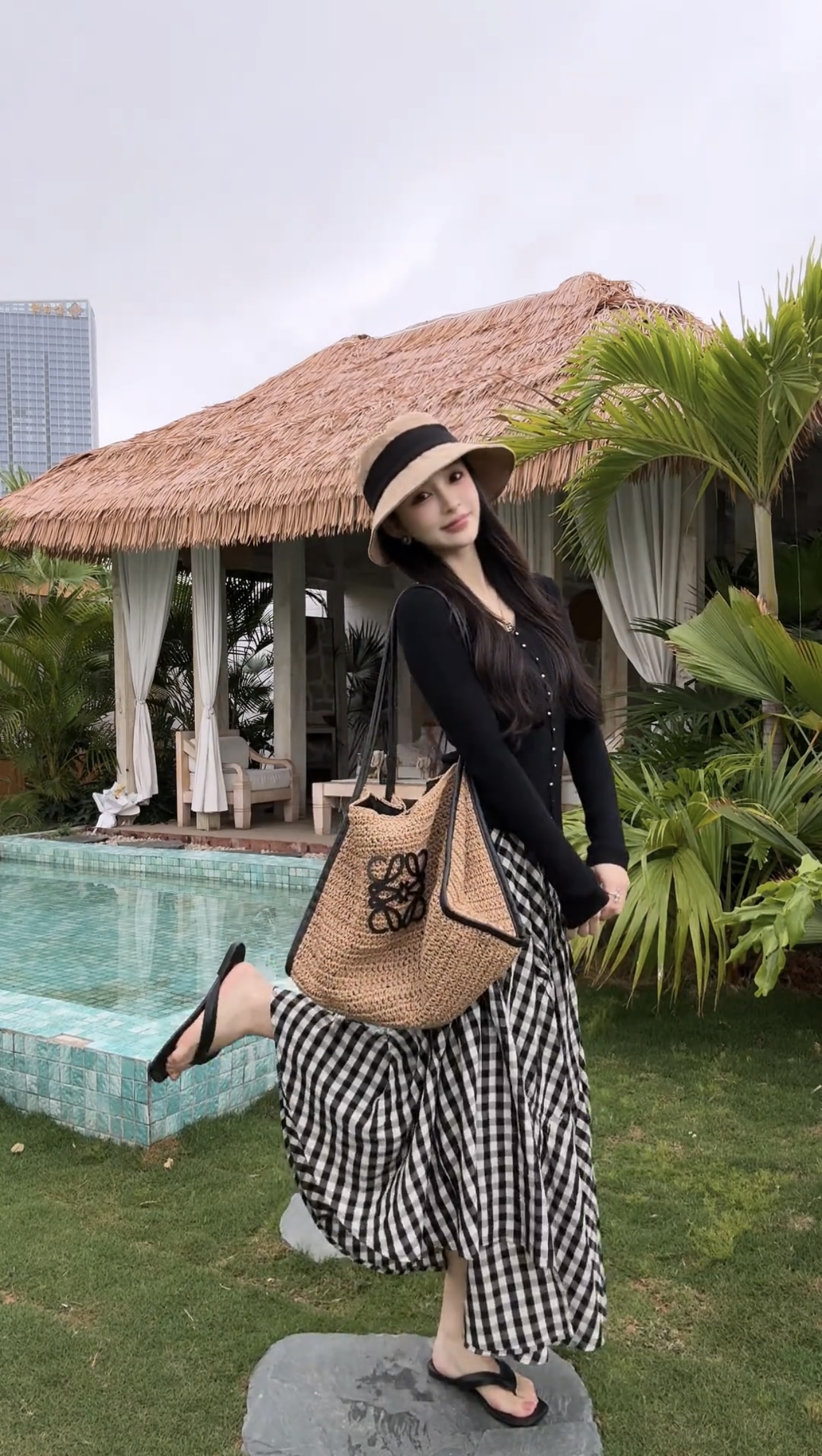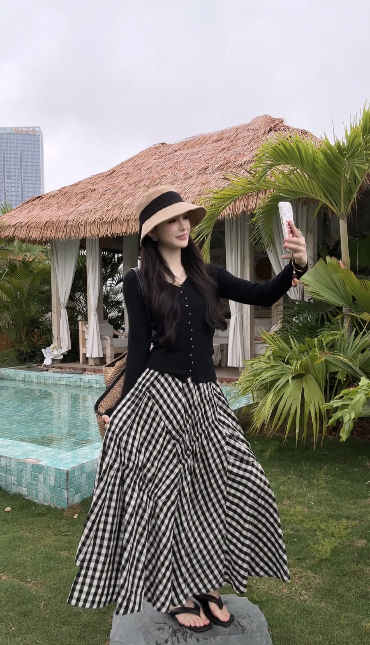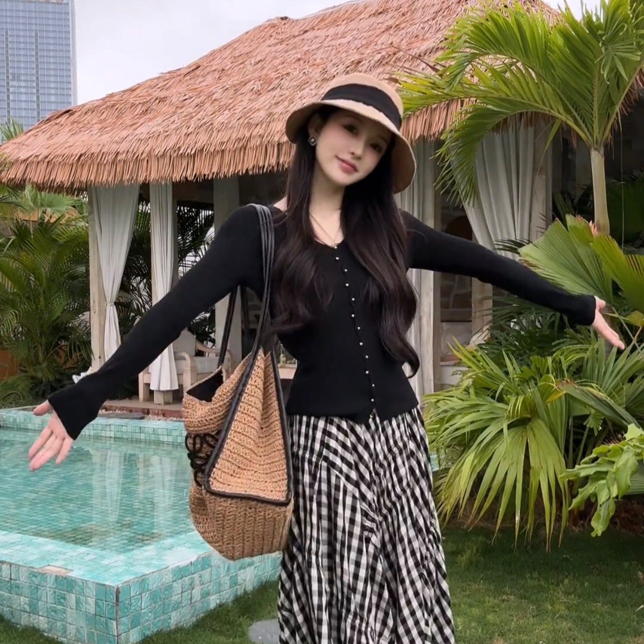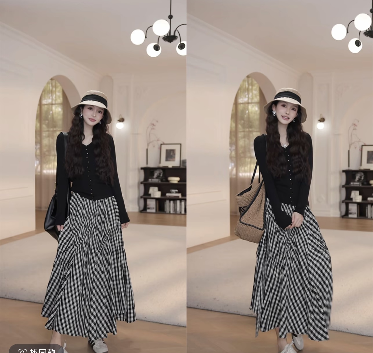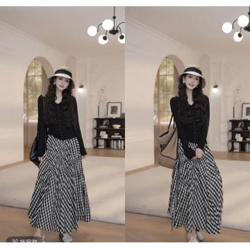 黑色上衣+格子裙