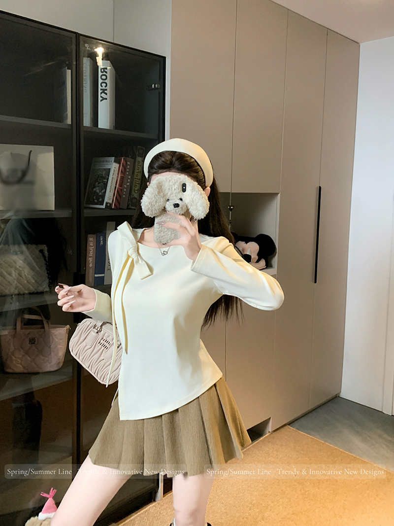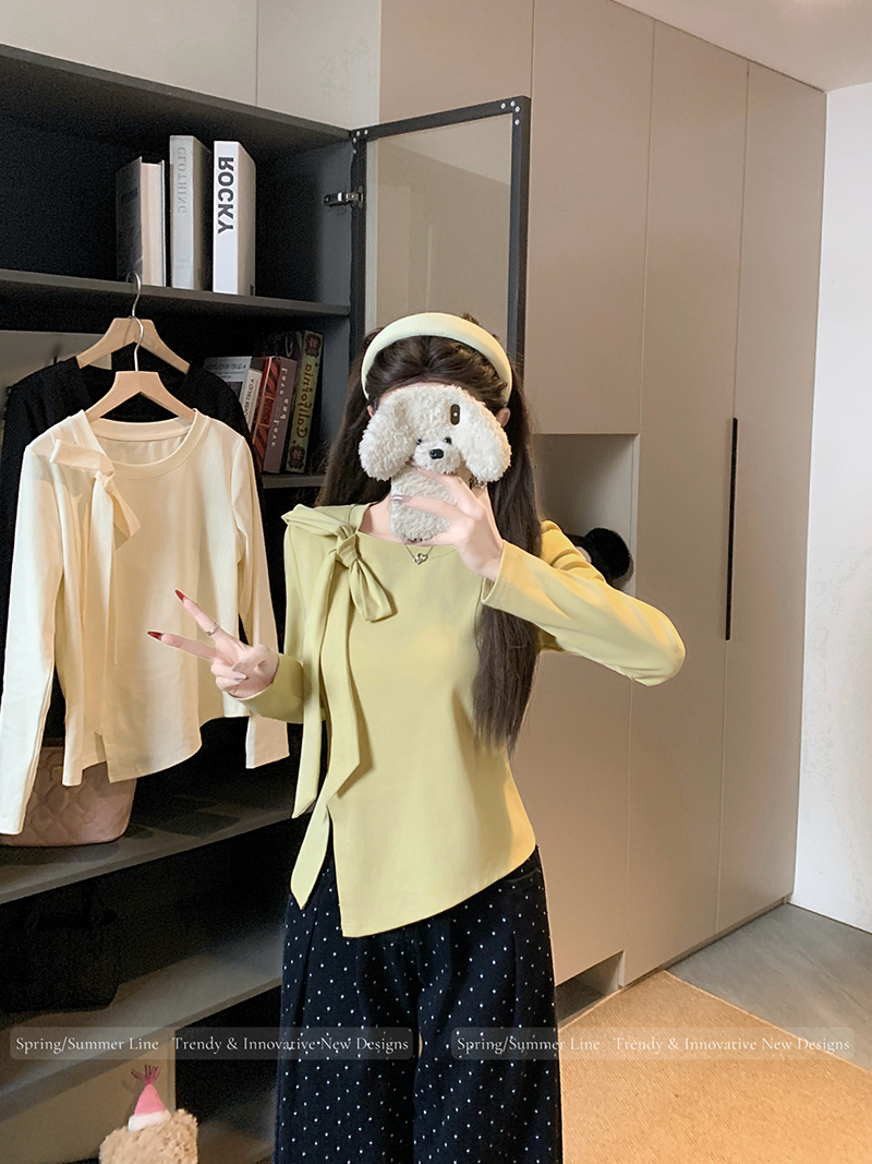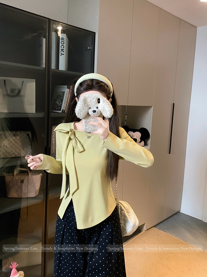BY10482# 春装新款胖mm大码女时尚纯欲方领立体蝴蝶结开叉长袖上衣 服裝批發女裝批發服飾貨源