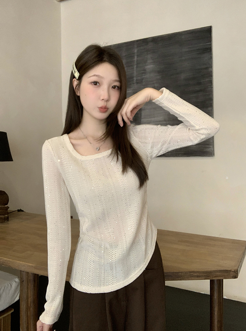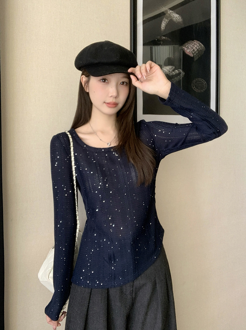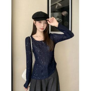 BY10484# 春装新款胖mm大码女高级感纯欲亮闪闪不规则长袖上衣 服裝批發女裝批發服飾貨源