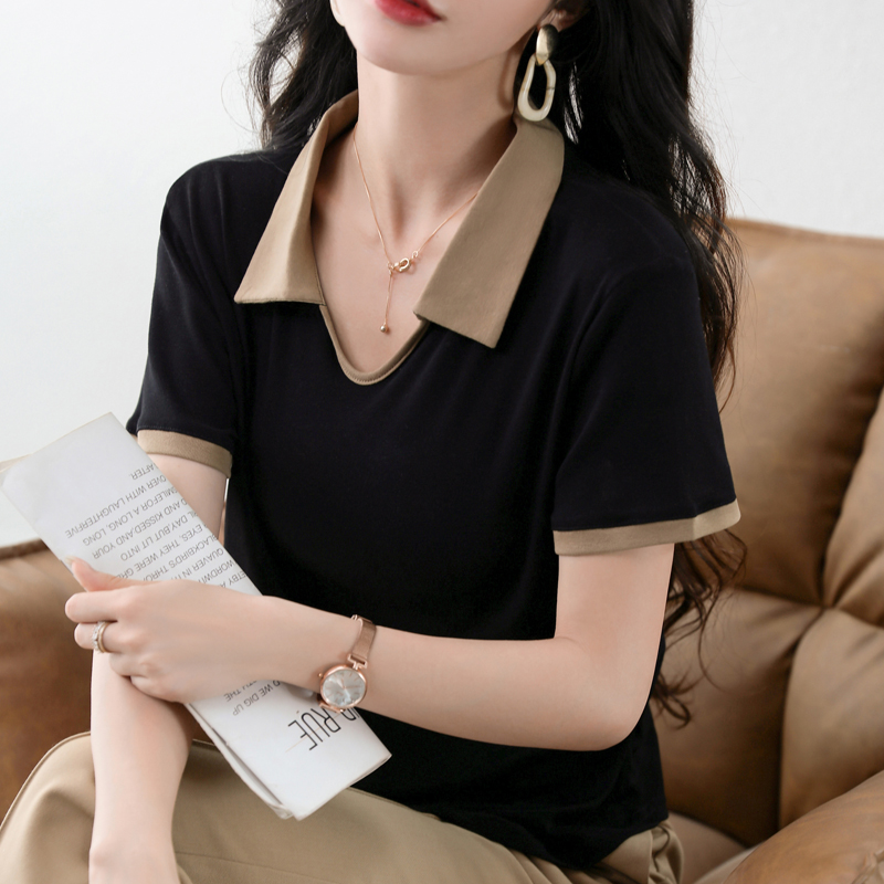 BY10499# 夏季新款韩版宽松设计感短袖t恤女棉质休闲气质简约翻领上衣 服裝批發女裝批發服飾貨源