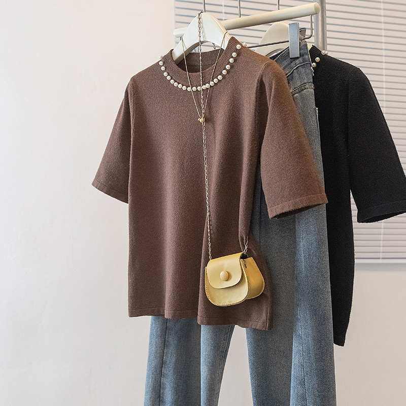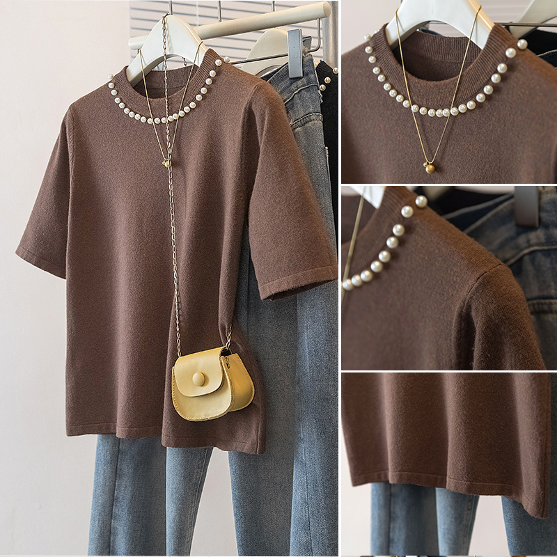 BY10654# 大码女装新款韩版高级潮流钉珠设计感显瘦修身针织上衣 服裝批發女裝批發服飾貨源