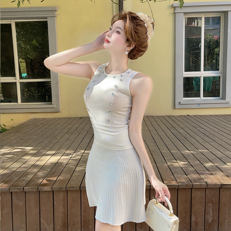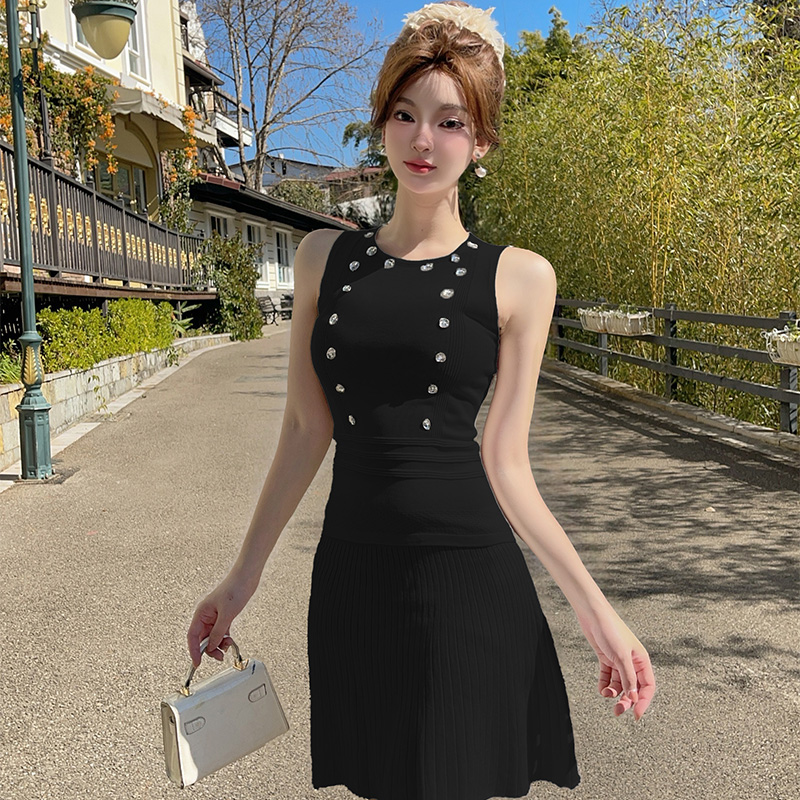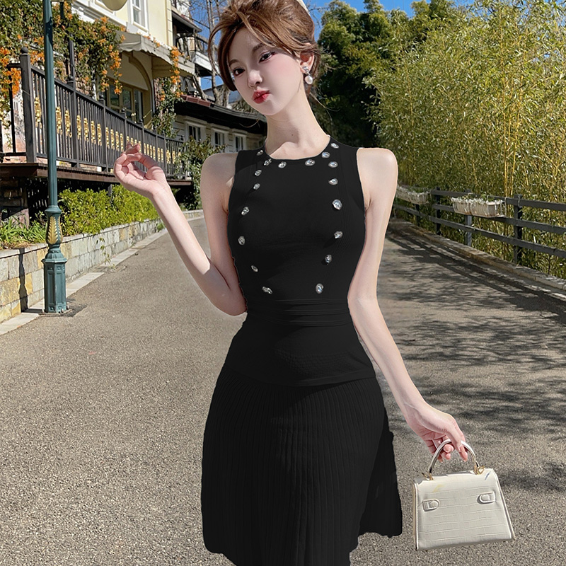 BY10923# 法式纯欲套装裙设计感修身小众气质无袖背心上衣百褶短裙 服裝批發女裝批發服飾貨源