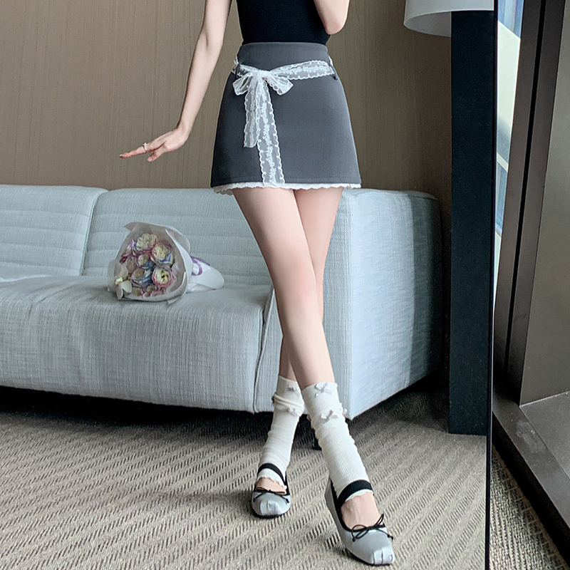BY11220# 法式芭蕾风蕾丝绑带半身裙女春夏季高腰百搭a字裙防走光短裙 服裝批發女裝批發服飾貨源