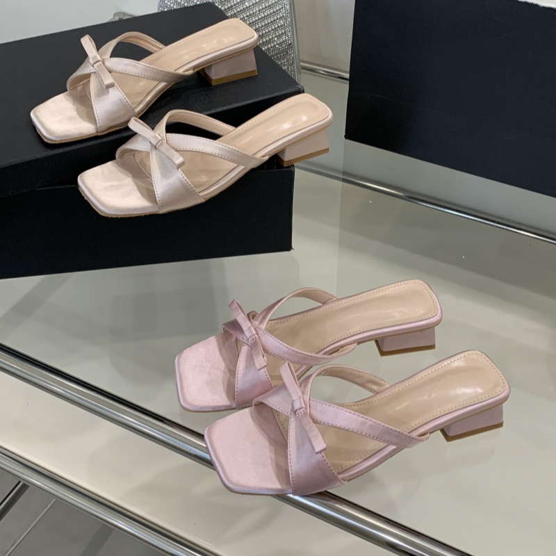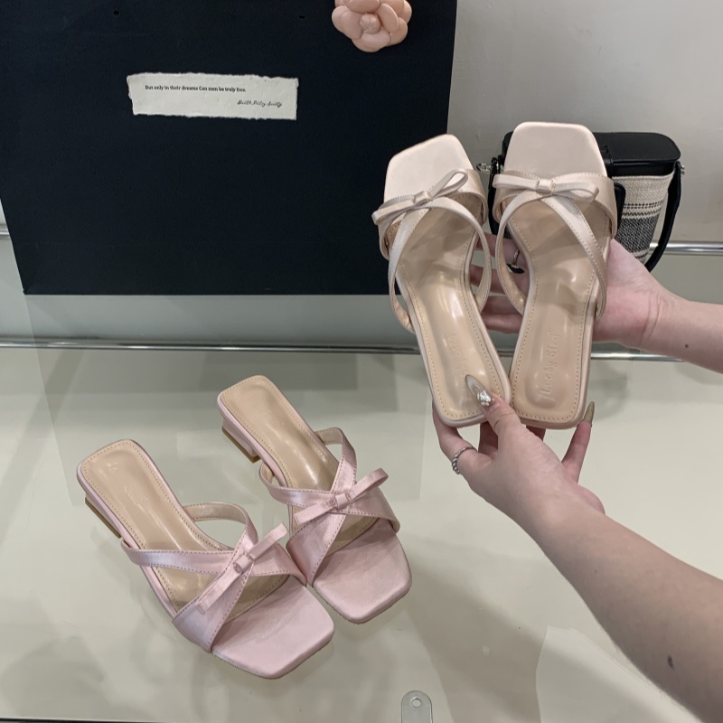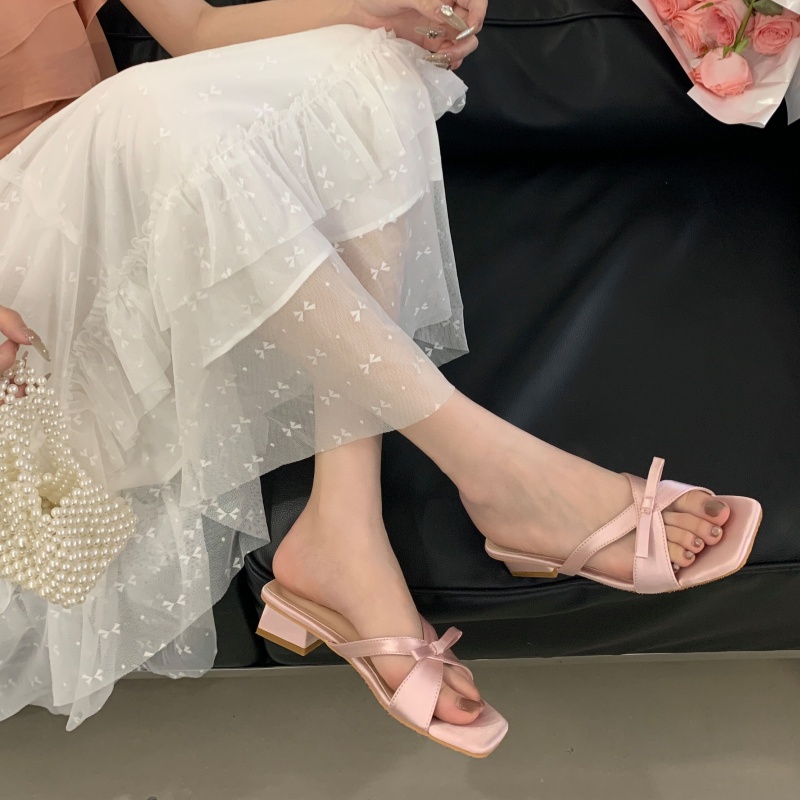 Home > 凉鞋、拖鞋 > X-33133#新款法式方头露趾凉拖鞋女绝美蝴蝶结仙女风后空外穿粗跟凉鞋 鞋子批发女鞋批发凉鞋货源