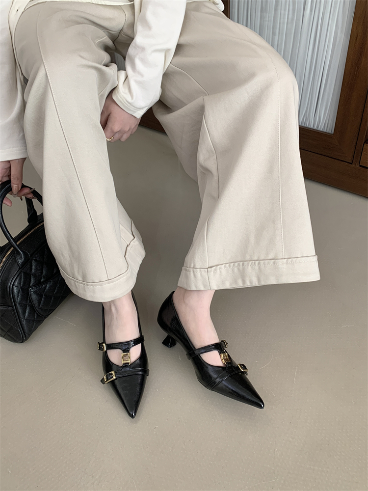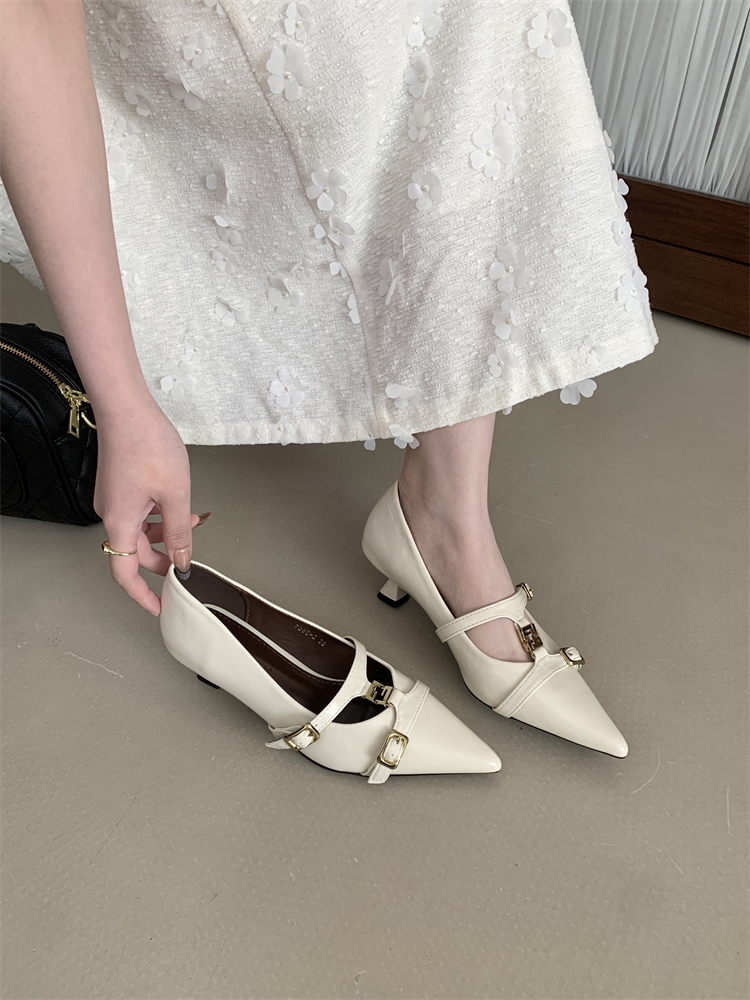 X-33168#春季新款高级感法式复古风尖头浅口单鞋女猫跟舒适通勤高跟鞋 鞋子批发女鞋批发凉鞋货源