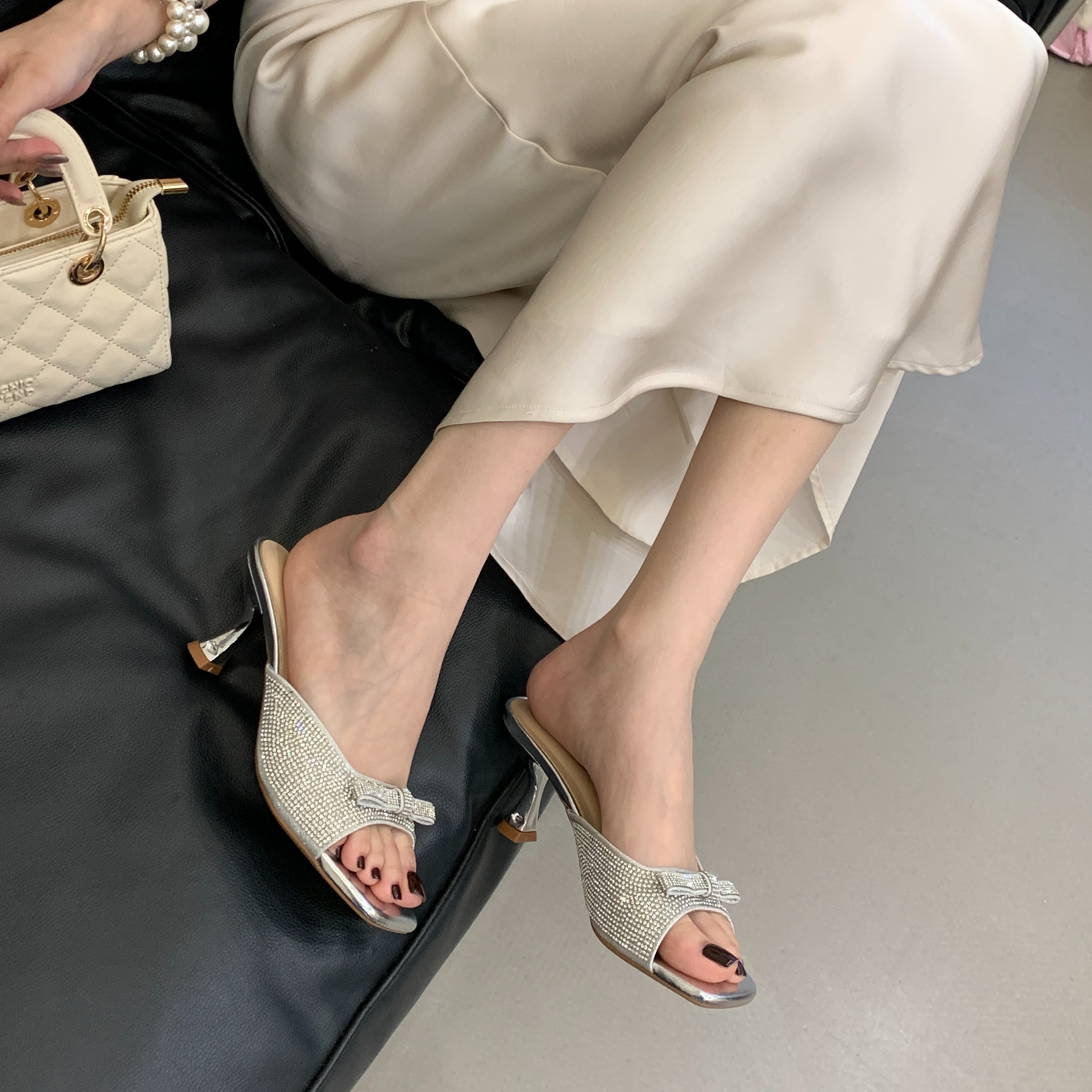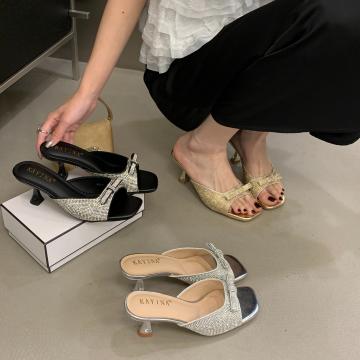 X-33169#夏季新款矮跟拖鞋时尚百搭露趾水钻蝴蝶结女鞋 鞋子批发女鞋批发凉鞋货源