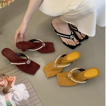X-33184#新款仙女风法式珍珠夹趾凉拖鞋女款夏季外穿通勤配裙子 鞋子批发女鞋批发凉鞋货源