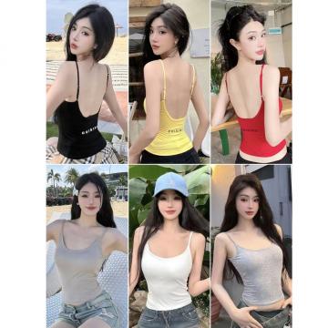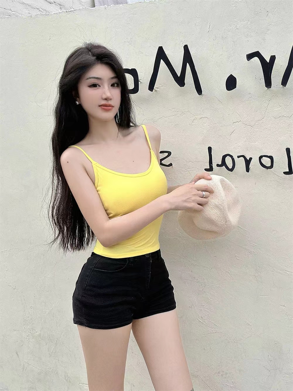 BY16972# 人棉纯色时尚百搭带胸垫吊带背心女修身百搭夏季辣妹小背心 服裝批發女裝批發服飾貨源