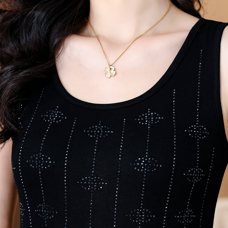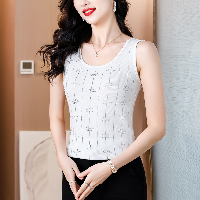 Home > 打底背心、防晒衣、围巾、披肩 > BY16974# 夏季新款高端欧货重工烫水钻竖条字母时尚单穿打底棉背心 服裝批發女裝批發服飾貨源